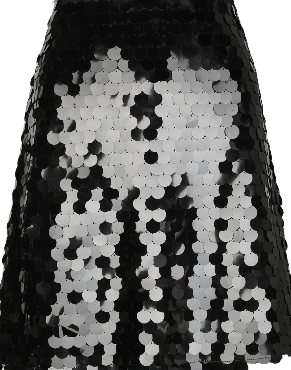 Kort nederdel med pailletter. Nederdelen har indvendig elastik i taljen samt en skjult lynlås i siden. Den er designet med en A-form og har en almindelig pasform. Modellen er iført størrelse 36.