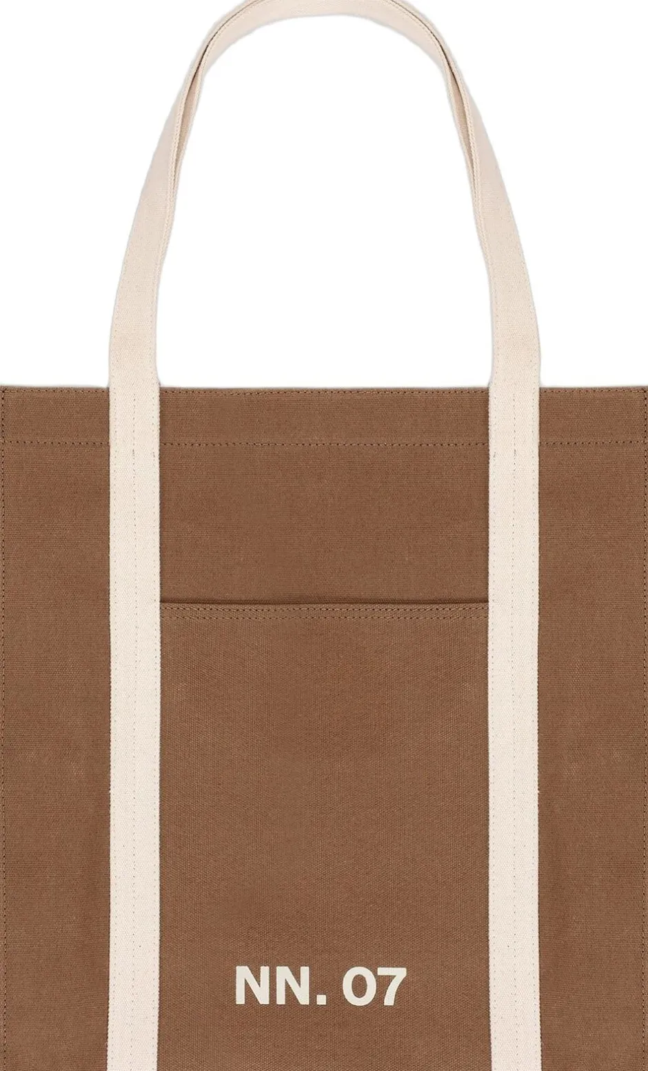 Tote taske lavet af økologisk bomuld og designet med et NN.07-logoprint og kontraststropper