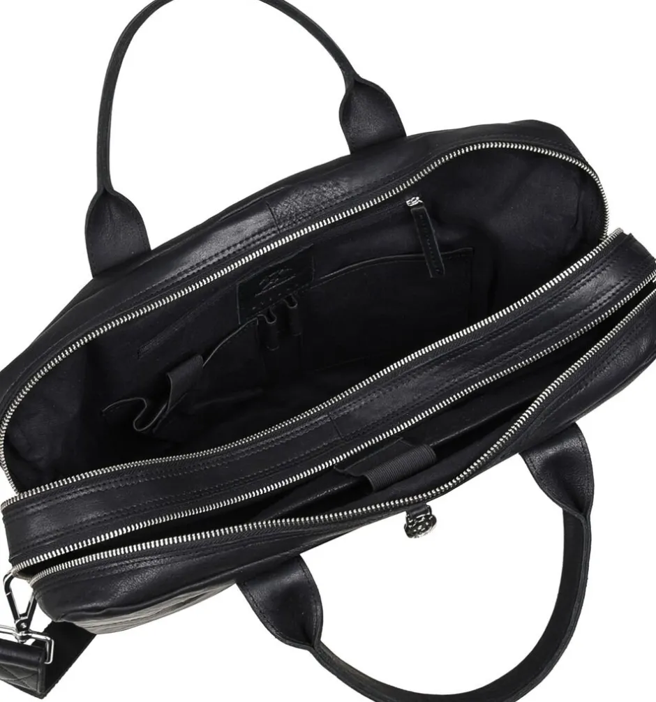 Axel i Catania skind fra Adax er en arbejdsmappe i kraftigt kalveskind og er inddelt i to hovedrum, der begge åbnes med lynlås. I det bagerste sidder en polstret PC-lomme og i det forreste finder du stiklommer, lynlåslomme samt plads til dine kuglepenne. Mappen har 2 polstrede bærehanke samt justerbar skulderrem. Vi anbefaler Adax læderbalsam samt Adax protections spray.