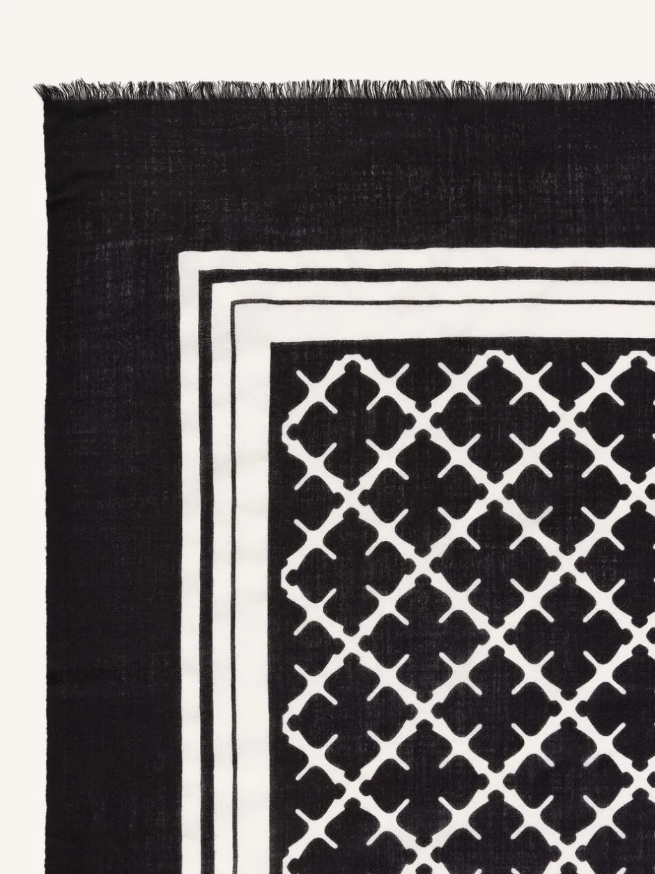Dette firkantede uldtørklæde er både stort og har et utrolig blødt greb, hvilket gør det til den perfekte basisdel i din hverdagsgarderobe. Det er forsynet med smukke detaljer som frynser i kanten og vores karakteristiske blomstermotiv, der tilfører dit look et smukt håndværksmæssigt touch. Brug tørklædet om halsen eller omkring skuldrene.
