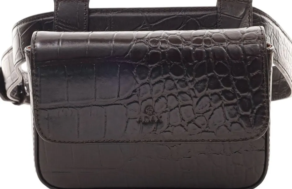 Elna bæltetaske i croco-præget læder fra Adax. Elna bæltetasken er en skøn lille taske med en justerbar strop. Tasken leveres med en flaplukning med magnetisk lukning. Tasken har et åbent rum med en indvendig åben lomme. Der medfølger en lille indkøbspose samt en garantifolder, der kan bruges som kortholder. Posen plejes med Adax beskyttelsesSpray.