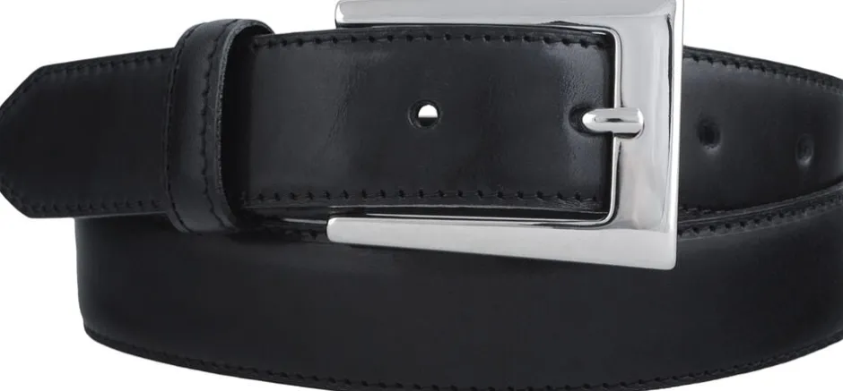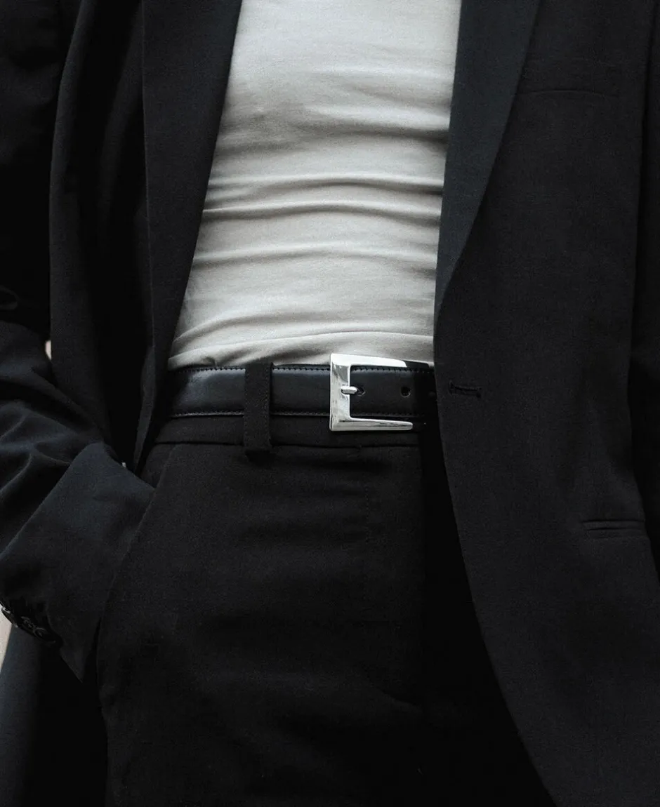 Et elegant bælte med chunky sølvfarvet spænde i 30 mm bredde. Bæltet er produceret i Danmark i to lag LWG-certificeret narvlæder og designet med kraftige stikninger langs kanterne på bæltet.