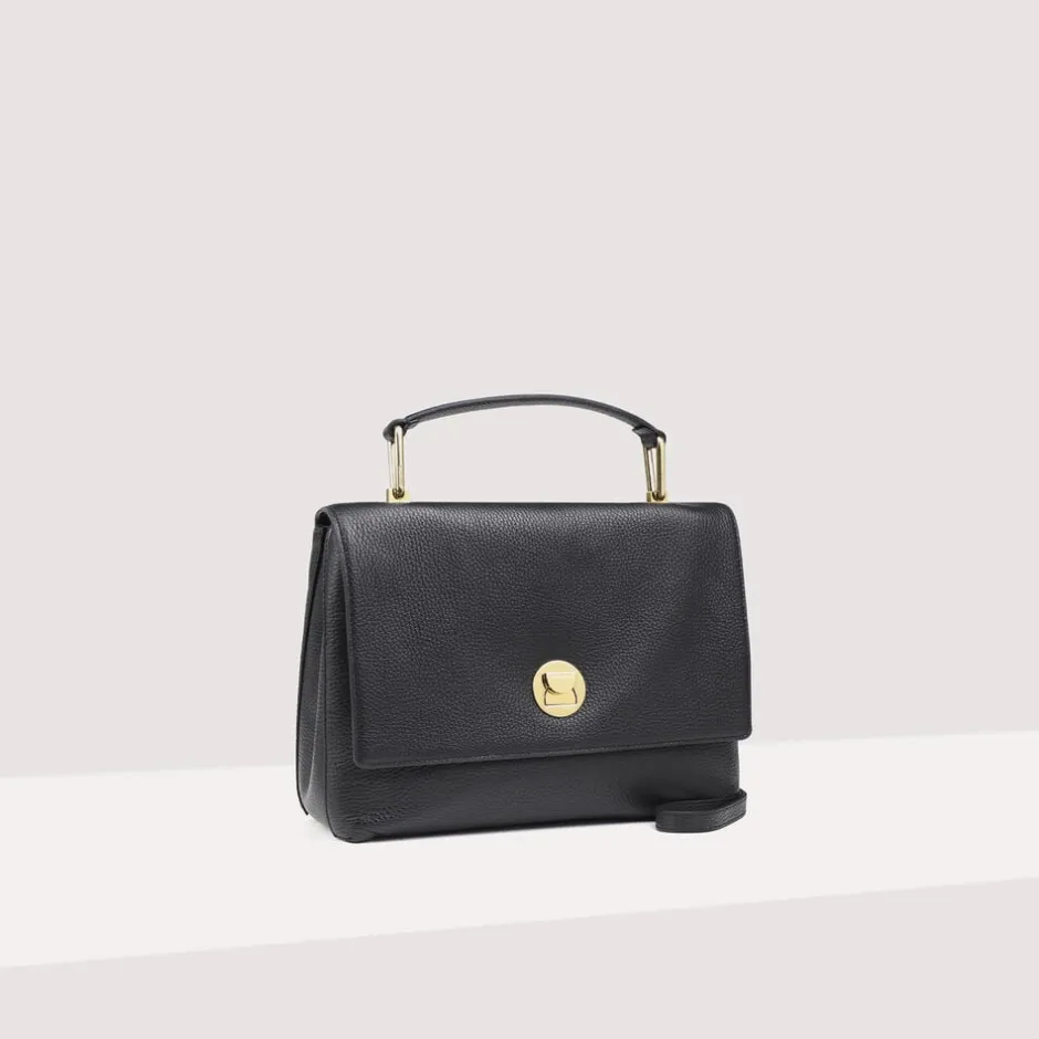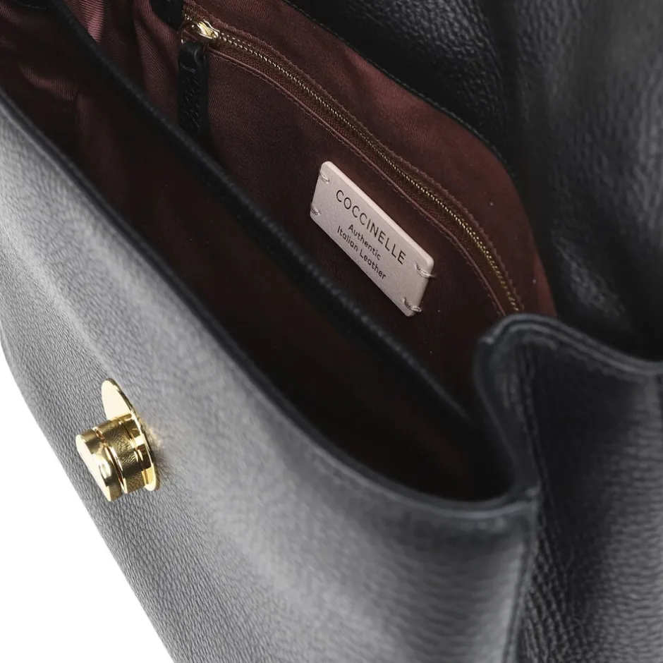 Skøn taske fra Coccinelle i den lækreste skindskvalitet. Tasken har to store rum med 3 indvendige lommer og spændelukning på fronten, fast bund samt en hank. Derudover har tasken en aftagelig og justerbar skulderrem samt en lomme med trykknapslukning bagpå. En lækker taske i den smukkeste kvalitet.