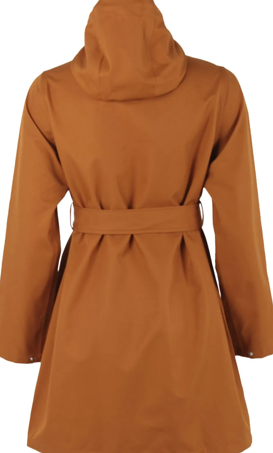 Den nye Rain Lover Rain Softshell er lavet i et virkelig fantastisk nyt regntøjsmateriale. Regnfrakken er i et blødt og stretchy materiale, der falder smukt og samtidig er ekstremt vandtæt (10. 000 mm) takket være en membran på bagsiden. Alle sømme er tapede, og så er regnfrakken naturligvis åndbar som alle Danefæs frakker. Det sikrer dig optimal komfort, når du bevæger dig i regnen. Regnfrakken har en enkel, lang og feminin pasform med bindebælte i livet. En dobbeltlynende vandtæt lynlås foran, der kan lynes nedefra og op, gør sammen med det elastiske materiale frakken dejligt cykelvenlig. Lynlåsen er dækket af et frontstykke, som lukkes med trykknapper. Regnfrakken har to skrålommer, der lukkes med trykknapper. Hætten har en lille skygge samt en god dybde med plads til en hue under. Hætten har snøre, så åbningen kan tilpasses ansigt og udsyn efter behov. Regnfrakken kan vaskes i maskine ved 30 grader. Generelt anbefales det, at man vasker overtøj mindst muligt. Brug i stedet en våd klud og luft eventuelt din frakke. FRAKKENS LÆNGDE: Målt fra skulder og ned, foran på frakken. XS 89 cm, S 91 cm, M 93 cm, L 95 cm, XL 97 cm, XXL 98 cm, XXXL 99 cm.