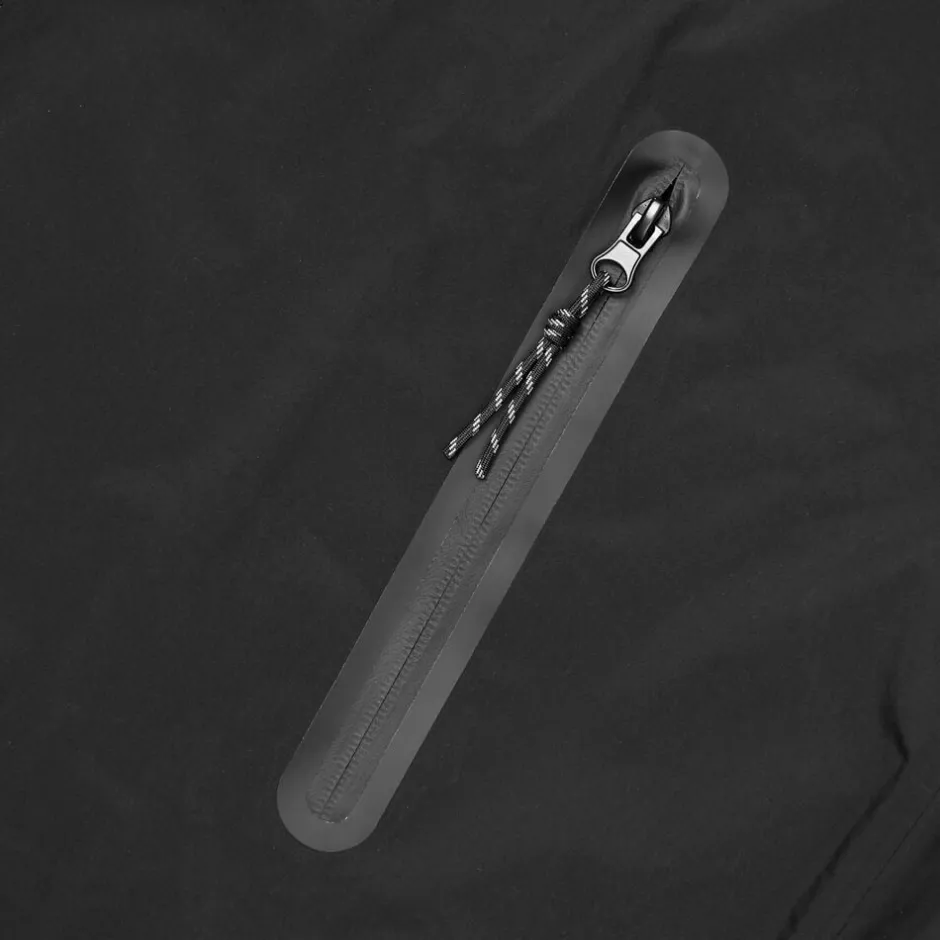 Praktisk regnjakke med justerbar hætte og stormskygge, der giver optimal beskyttelse mod regn. Den lukkes med en vandtæt to-vejs lynlås og har to forlommer med vandtætte lynlåse. Velcro ved ærmerne og elastisk snøretræk i taljen giver et mere tilpasset fit, mens meshfor og ventilationsåbninger i ryggen øger komforten. Jakken har tapede sømme, sporty snoretrækdetaljer samt elastiske skulderstropper, der gør det muligt at bære den åben. Jakken kan modstå et vandsøjletryk på 10. 000 mm.