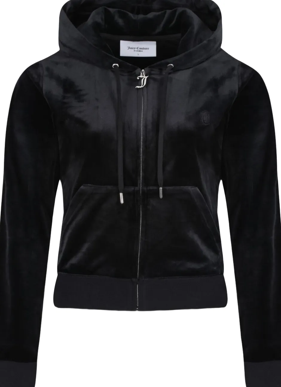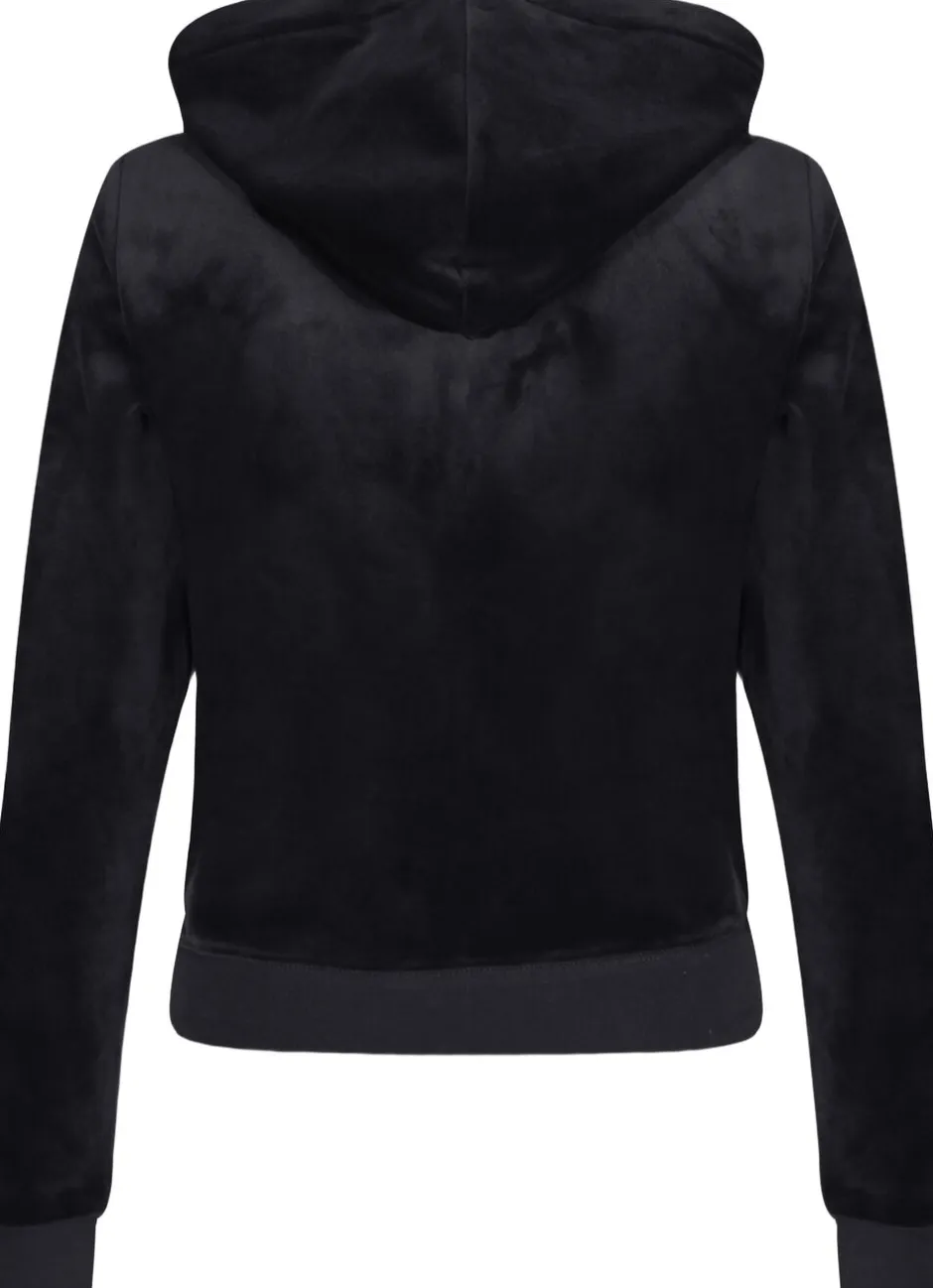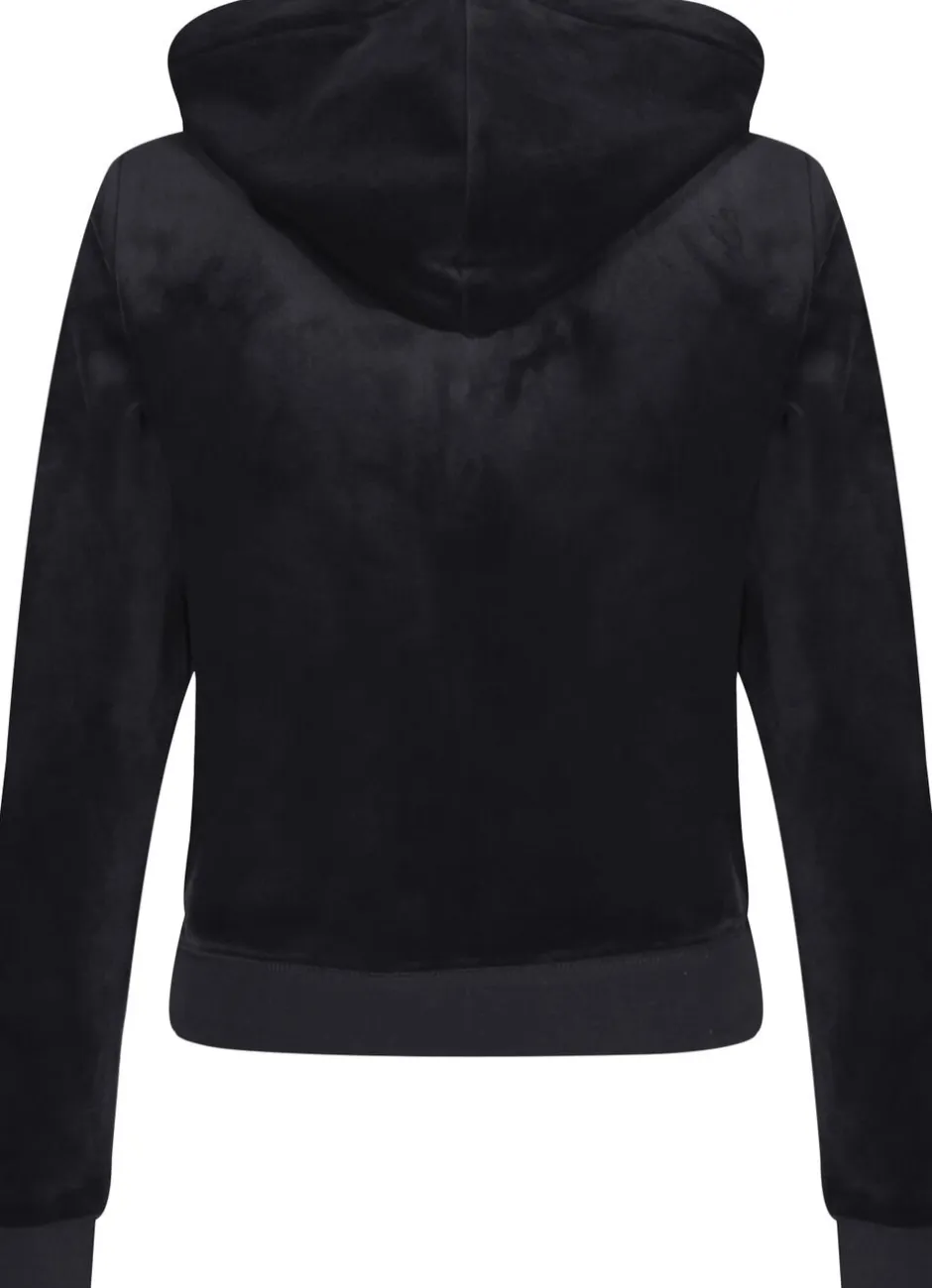 Hættetrøje med lynlås i klassisk velour med sølvfarvet hardware. Slank pasform med kængurulommer og foret hætte