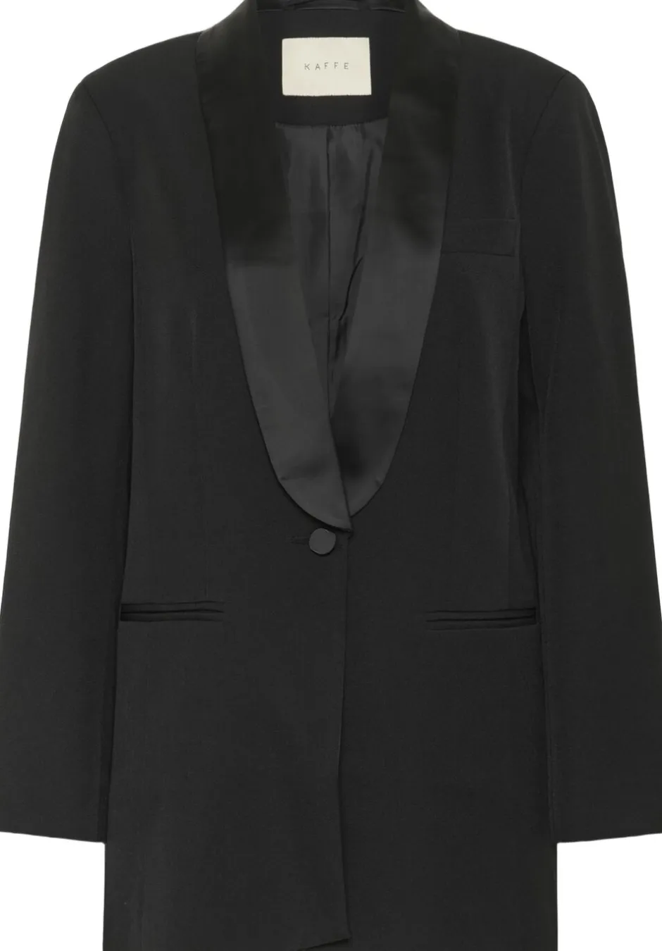 Kalorindia blazeren fra Kaffe er den perfekte tilføjelse til din garderobe, uanset om du skal til en festlig anledning eller ønsker at opgradere dit hverdagslook. Denne blazer kombinerer et moderne, loose fit med en tidløs elegance, der gør den til et alsidigt valg for enhver stilbevidst kvinde. Med sin klassiske krave og enkle knaplukning er blazeren både stilfuld og praktisk.