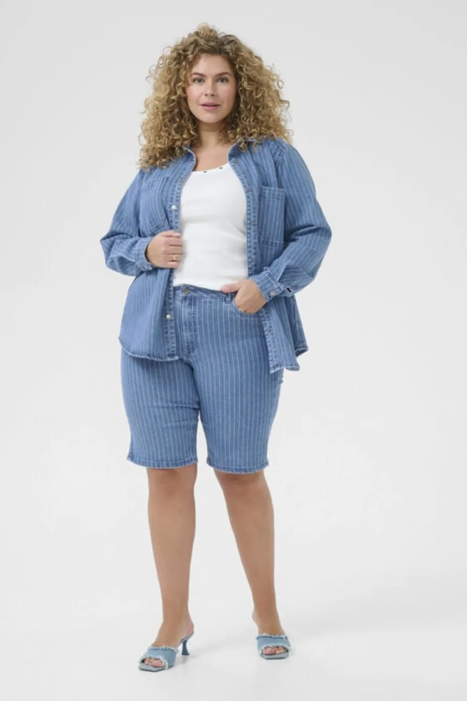 Kcreeca Bermuda Shorts fra Kaffe-Curve er det perfekte valg til varme dage, hvor du ønsker at kombinere stil med komfort. Disse shorts er ideelle til både afslappede udflugter og mere formelle anledninger, hvor du stadig vil føle dig godt tilpas. Med deres regular fit sikrer de en flatterende pasform, der fremhæver din figur.