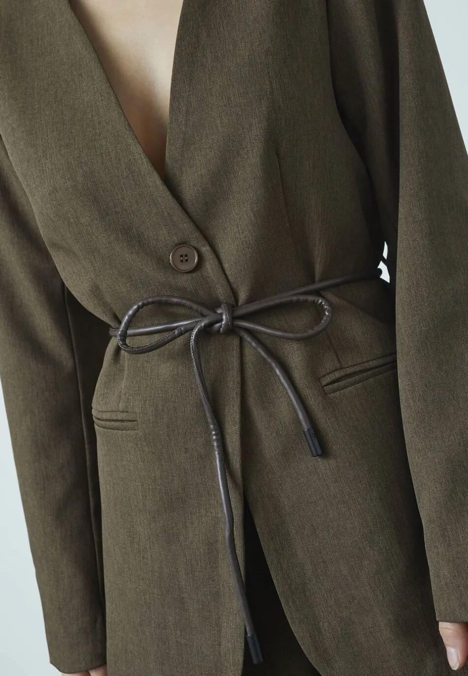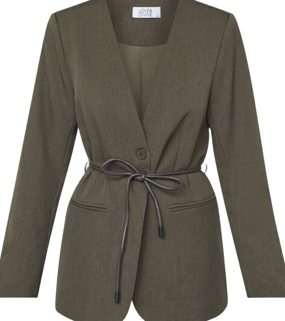 Oplev den tidløse elegance med Love 1344 fra Love-Divine. Denne blazer er den perfekte tilføjelse til din garderobe, uanset om du skal på arbejde, til brunch med vennerne eller en aften i byen. Med sit stilfulde snit og praktiske bælte, der fremhæver din figur, vil du føle dig selvsikker og chic hele dagen.