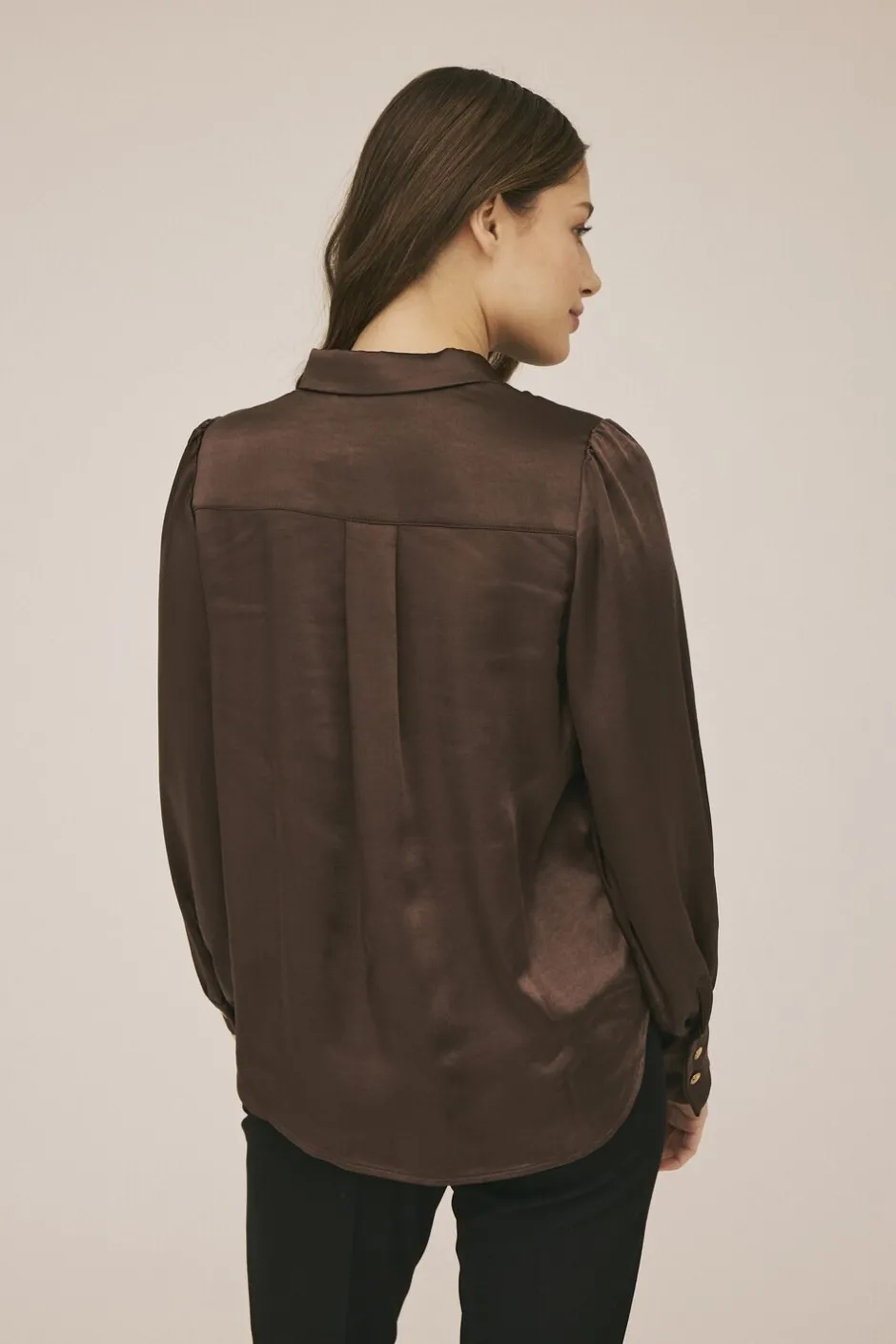 Skjorte fra Magasin du Nord Collection i den fineste kvalitet af 100% genanvendte fibre med GRS-certificering. Skjorten er enkel i modellen med en skjult knaplukning på fronten, lange ballonærmer med manchetter og fine knapper samt en elegant, løs pasform. En skøn skjorte i den smukkeste kvalitet.