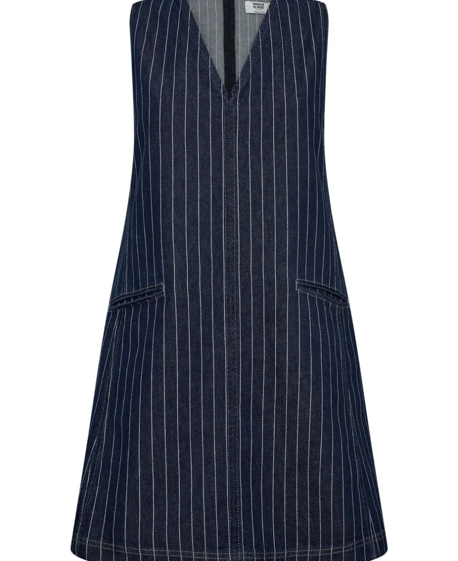 Spencerkjole fra Magasin du Nord Collection i den blødeste kvalitet af 100% økologisk bomuld med GOTS-certificering. Kjolen er enkel i modellen med et elegant, nålestribet print, skjult lynlåslukning på ryggen, V-udskæring, frontlommer samt en karakteristisk A-facon. En skøn spencerkjole i en lækker kvalitet.
