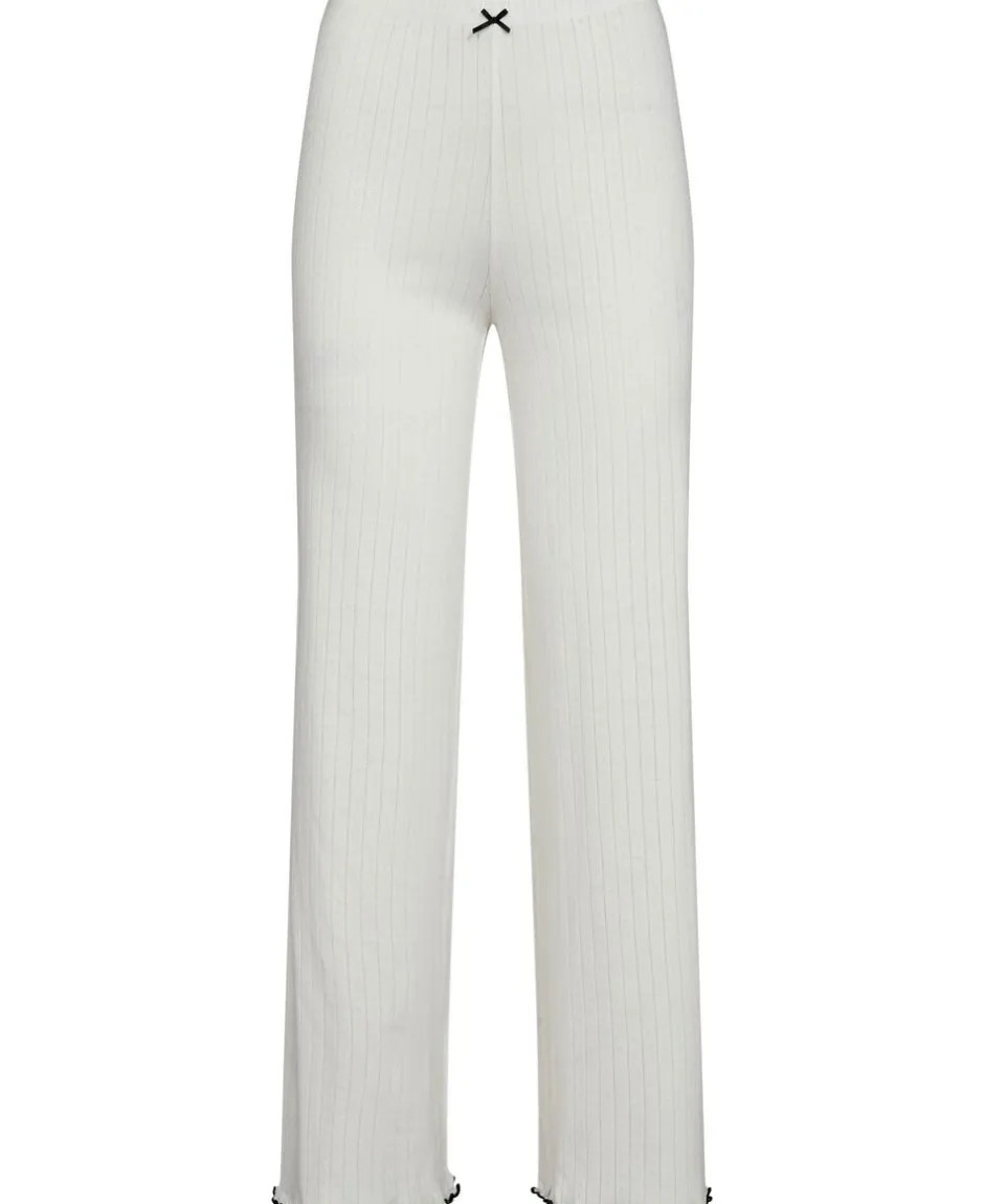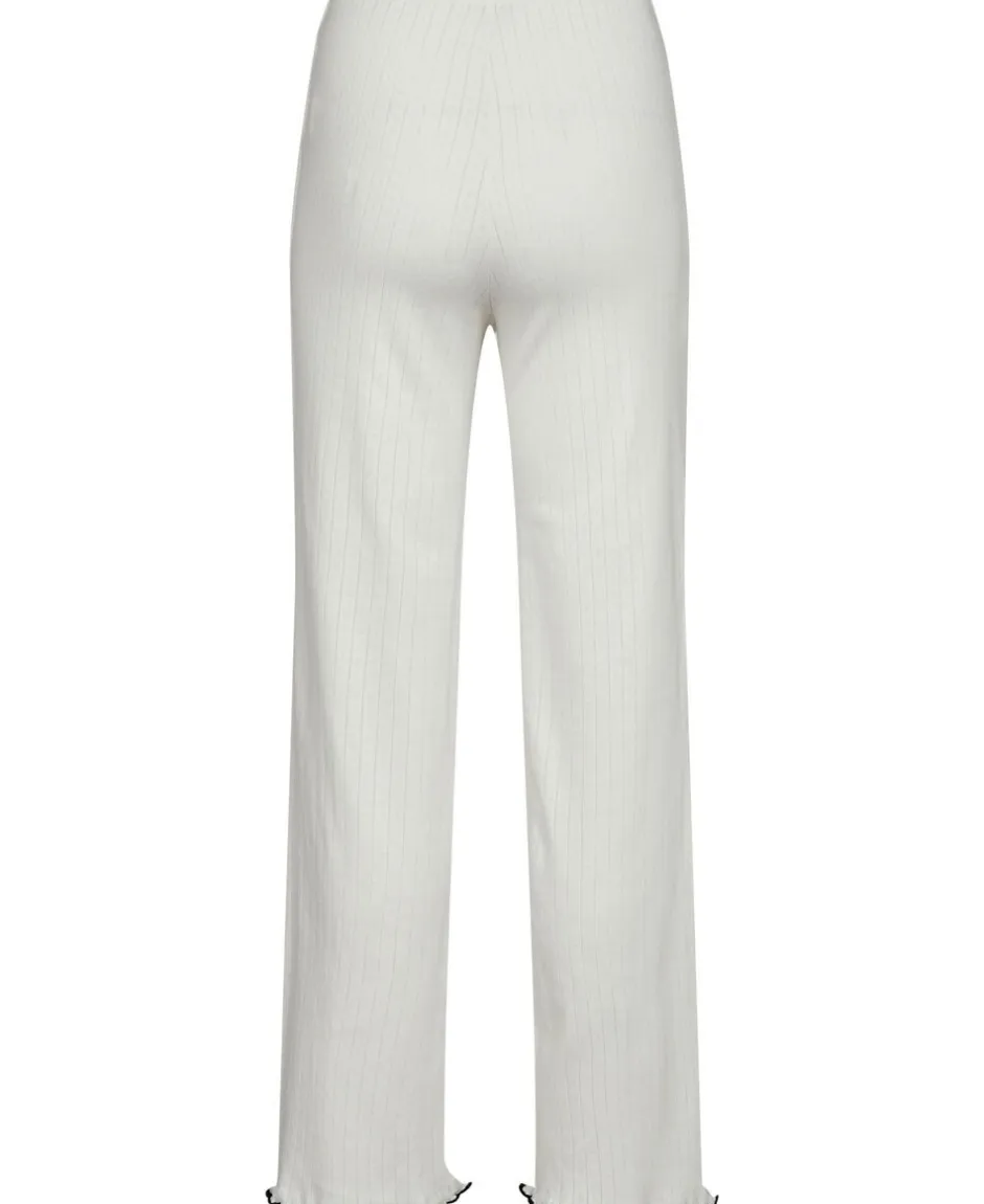 Bukser fra Magasin du Nord Collection i den blødeste kvalitet af 100% økologisk bomuld med GOTS-certificering. Bukserne er enkle i modellen med det fineste hulmønster, sløjfedetalje, bølgekant i bunden samt en smal elastik i taljen. Et par komfortable bukser i den lækreste kvalitet.