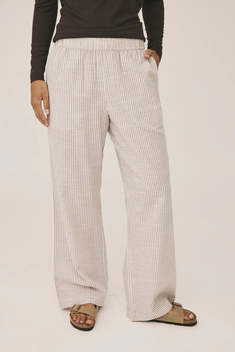 Natbukser fra Magasin du Nord Collection i den blødeste kvalitet af 100% økologisk bomuld med GOTS-certificering. Bukserne er enkle i modellen med et stribet mønster, sidelommer, elastik i taljen samt en lige pasform. Et par skønne natbukser i den lækreste kvalitet.