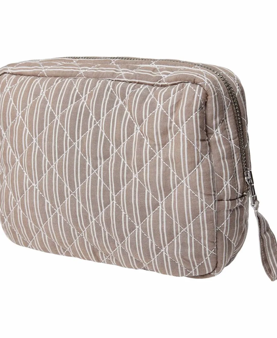 Toilettaske fra Magasin du Nord Collection i den blødeste kvalitet af 100% økologisk bomuld med GOTS-certificering. Toilettasken består af ét stort rum med lynlåslukning samt mindre inderlommer. Derudover har toilettasken et lille håndtag samt fine vatterede syningsdetaljer. En skøn toilettaske i den lækreste kvalitet.