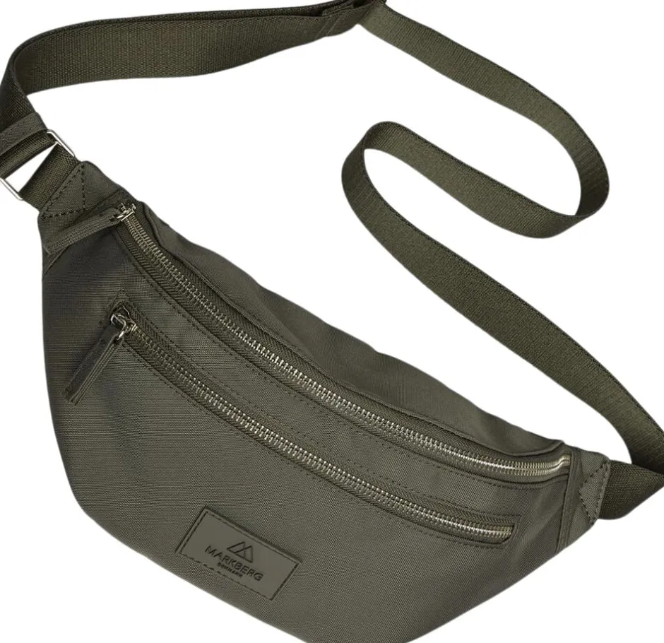 Cargo Bum bag fra Markberg er en praktisk og stilfuld bæltetaske, der kombinerer funktionalitet med bæredygtighed. Tasken er lavet af genanvendt polyester, hvilket gør den til et mere miljøvenligt valg. Den rummelige indvendige opbevaringsplads gør det nemt at organisere dine nødvendigheder, mens den lille lynlåslomme hjælper med at holde mindre genstande sikre og let tilgængelige. På fronten har tasken to lynlåslommer, hvilket giver ekstra plads til opbevaring af småting. Den justerbare strap sikrer, at du kan tilpasse tasken til din ønskede pasform, så den sidder komfortabelt hele dagen. Markberg-logoet på fronten er lavet i vegansk silikone, hvilket viser virksomhedens engagement i at undgå animalske materialer. Taskens for består ligeledes af 100% genanvendt polyester, hvilket yderligere understøtter dens bæredygtige profil. Med målene 13 cm x 31 cm x 8 cm er Cargo Bum bag både kompakt og rummelig, hvilket gør den ideel til daglig brug såvel som til rejser.
