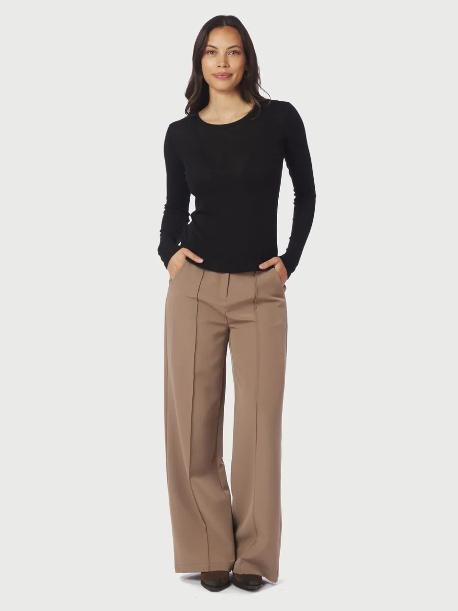 Langærmet bluse i en blød ribkvalitet. Blusen har en rund halsudskæring og en tætsiddende pasform. Den er lavet i en blød lyocell- og uldblanding. Modellen er iført størrelse 36.