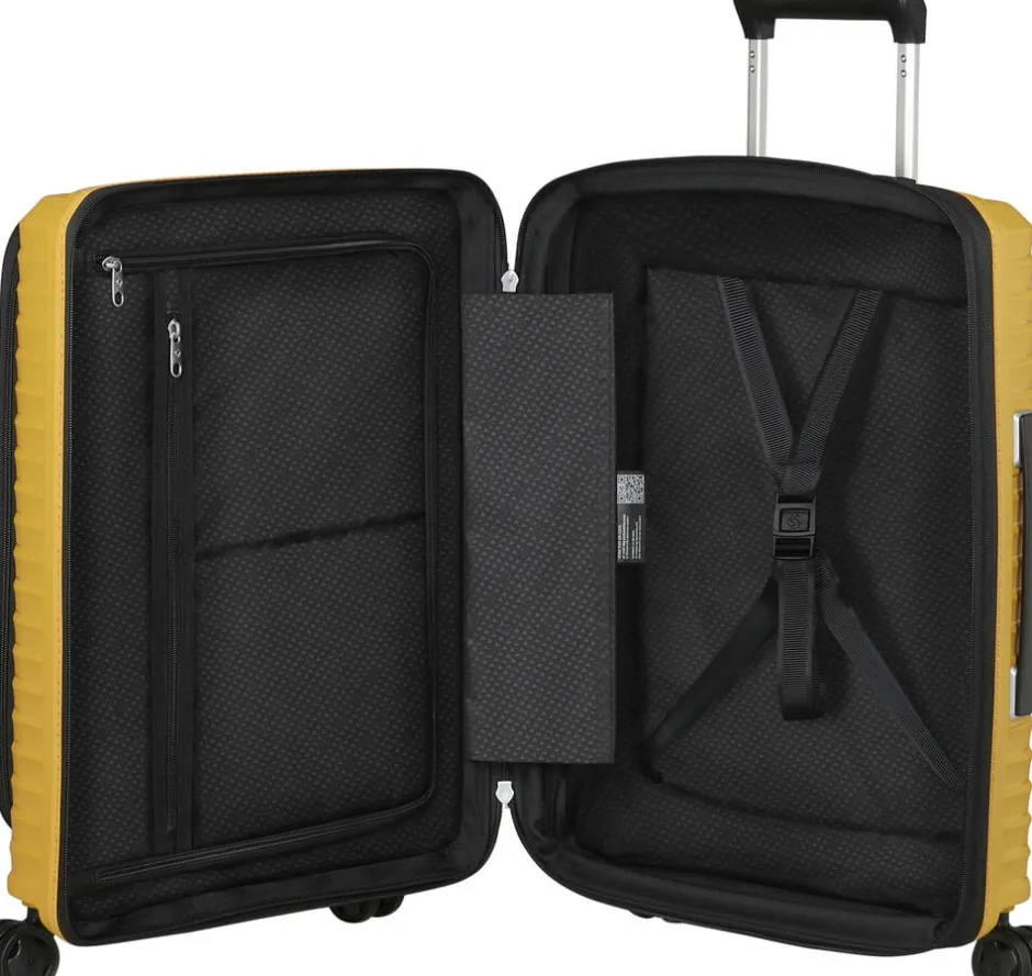 Kabinekuffert med mulighed for udvidelse, praktisk frontlomme med plads til 15,6″” pc og 10,5″” tablet, polypropylen,4 hjul,TSA lås , dobbelt trollystativ, navneskilt, vægt 2,6 kg,rumindhold 42/48 l, 5 års garanti,55x40x23/26 cm.
