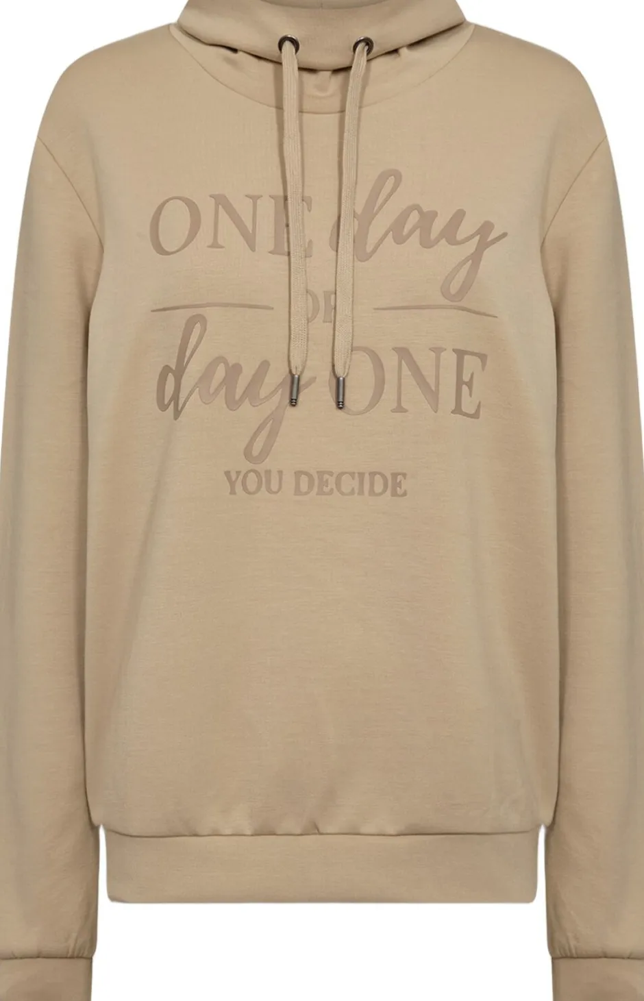 SC-BANU 256 er en sweatshirt lavet af 48% modal, 48% polyester og 4% elastan. Den har en højhalset krave med snøre og et motiverende print foran. Sæt den sammen med jeans eller leggings for et afslappet og behageligt look.