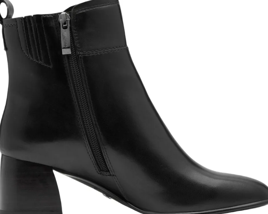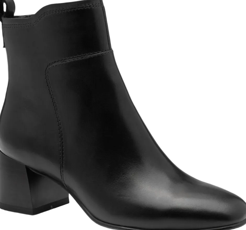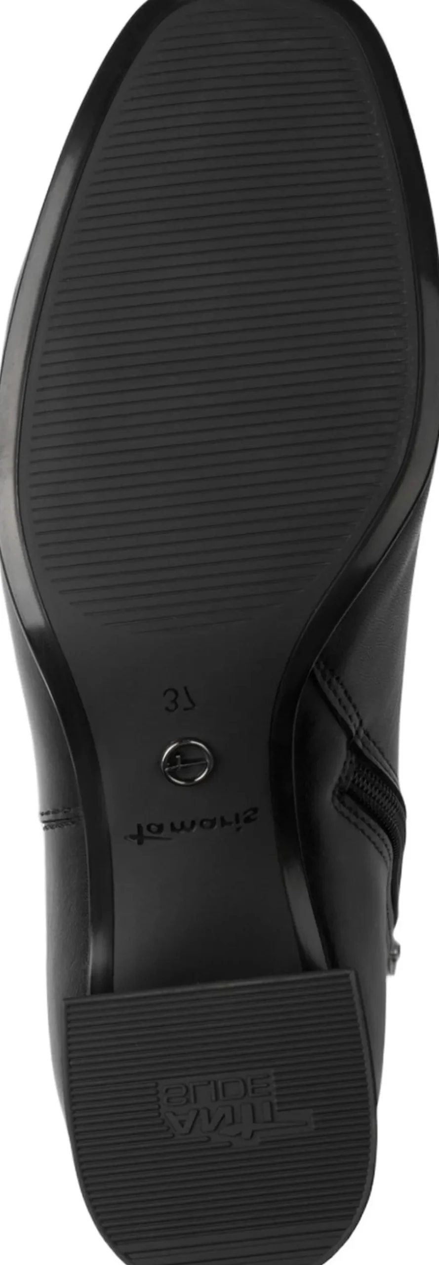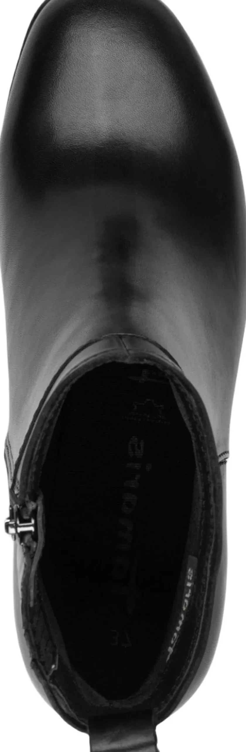 Enkel sort kort støvle med indvendig lynlås og på en flot elegant blokhæl på 55 mm. Skafthøjde er 14 cm og der er Antislide og Antichok i hælen. I dæksålen er der Touch it effekt