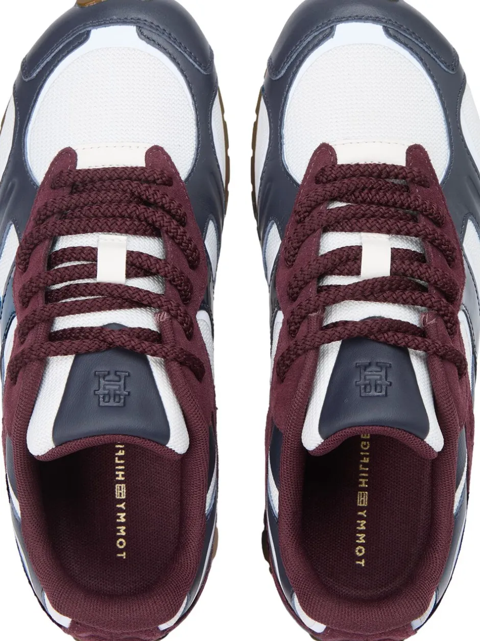 Disse nyskabte retro runner sneakers kombinerer skinnende og taktile napa læderoverdele med dristig branding samt shock cord snørebånd for et robust udtryk.