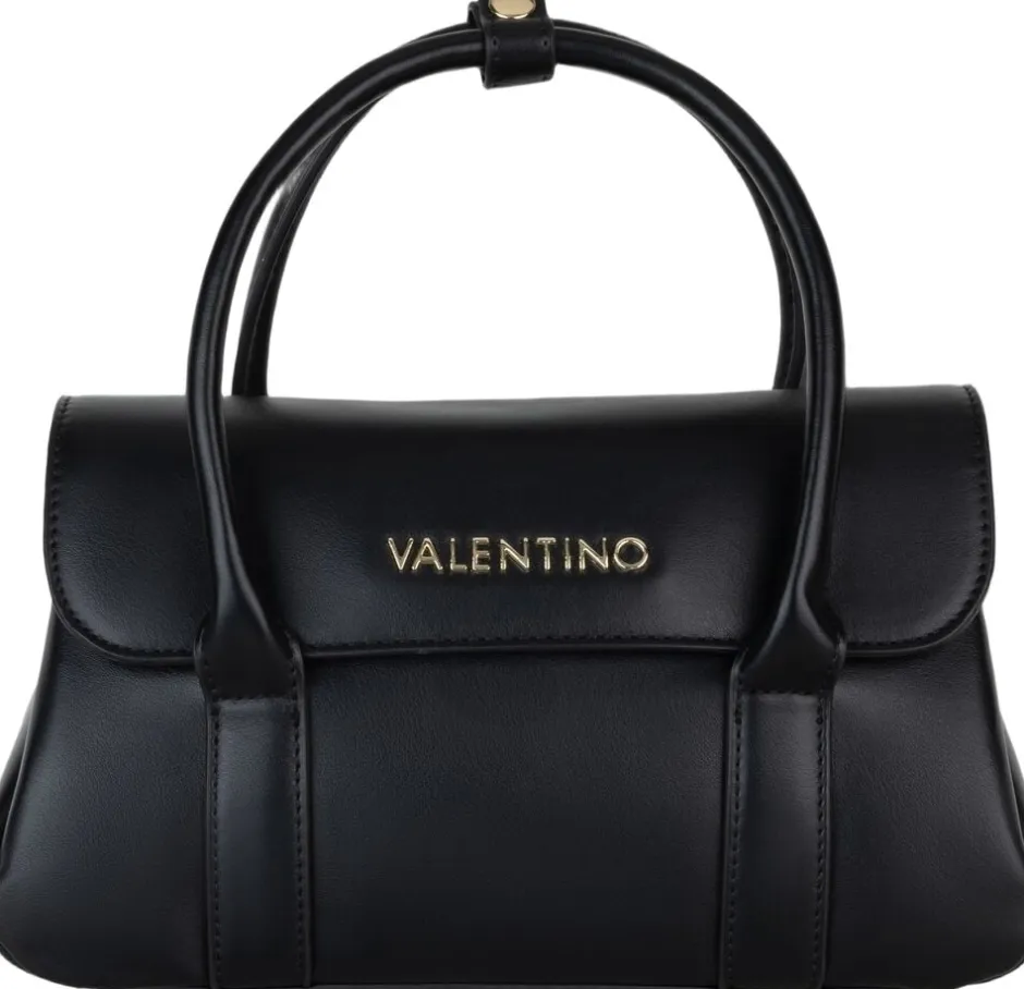 Kompakt Valentino Bags Kompakt-håndtaske fra West Re-serien er fremstillet af glat PU med en elegant finish. De buede tophåndtag og den diskrete flaplukning skaber en tidløs silhuet, mens den aftagelige skulderrem giver alsidighed til dage på farten. Tasken er fuldendt med let guldtonet hardware og det kendte Valentino-logo for det forhøjede touch