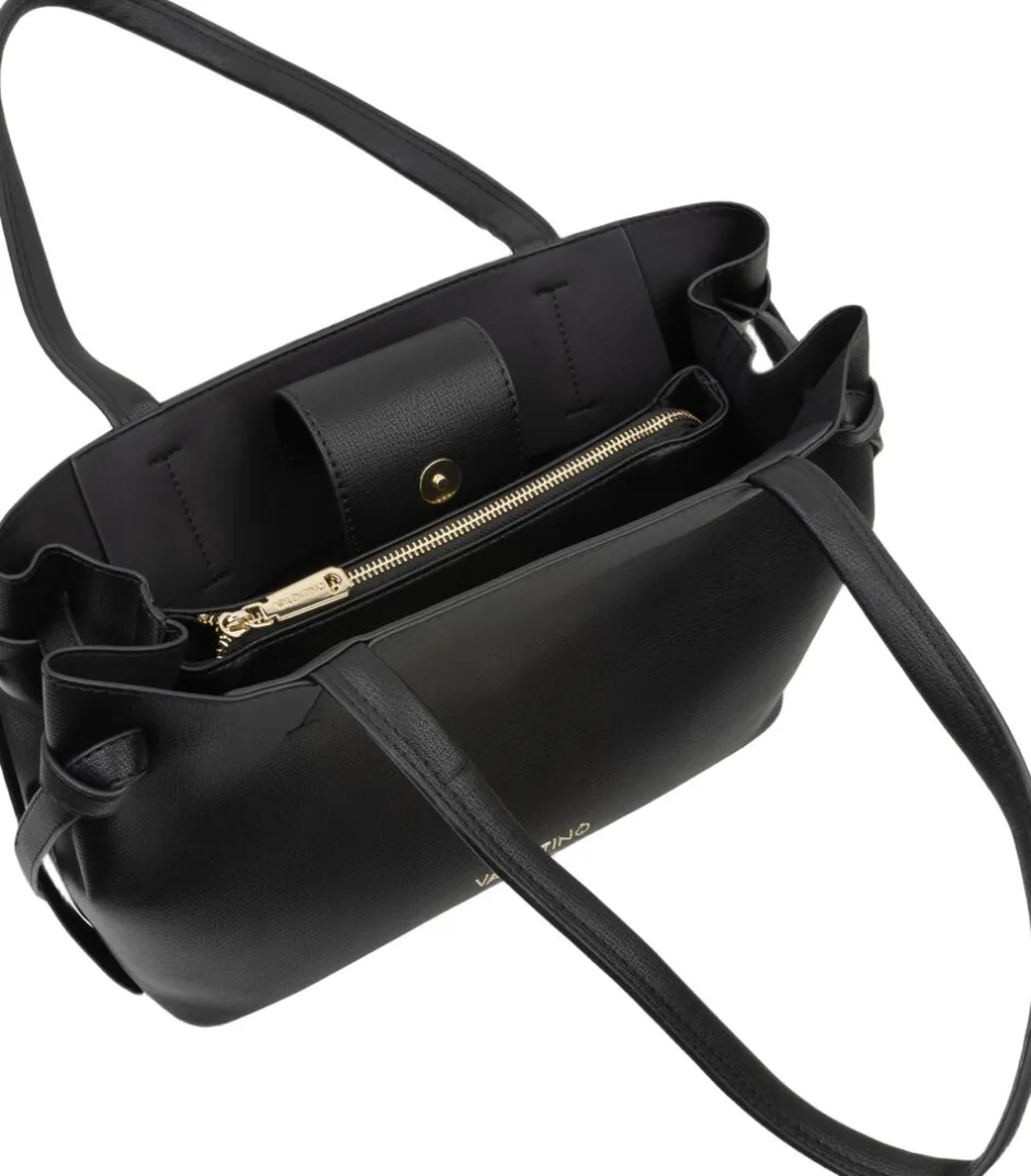 Win Re-shopperen fra Valentino Bags er lavet af glat PU. De rene linjer fremhæves af knudedetaljer på siderne og de dobbelte håndtag, som gør det nemt at bære den over skulderen. Indvendigt er den rummelig, hvilket gør den perfekt til hverdagens essentials. Afsluttet med et diskret Valentino-logo i guldfarvet hardware på fronten.