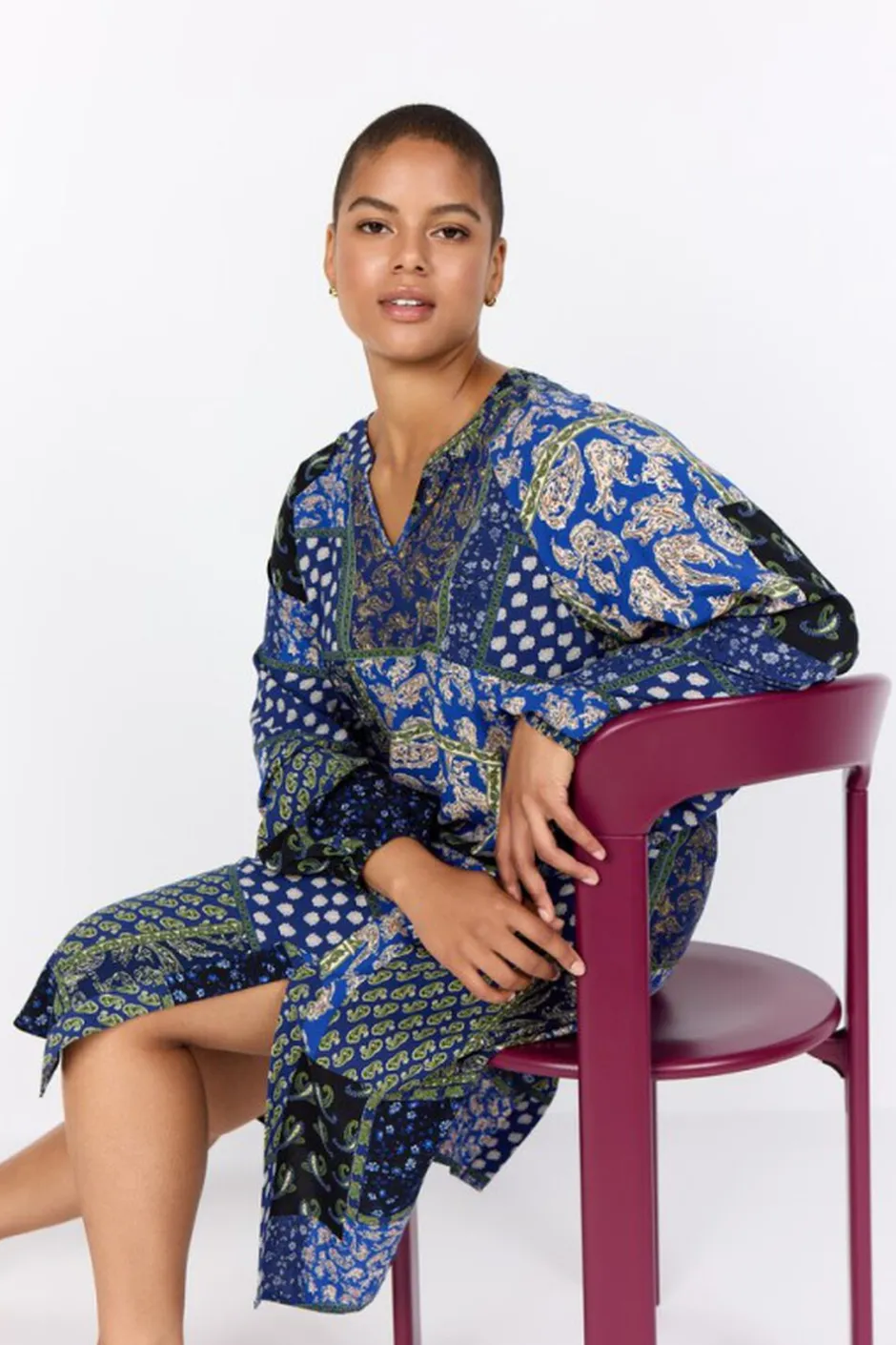WA-NEA 3 er en kjole fremstillet af 100 % LENZING ECOVERO-viskose. Den har V-udskæring, paisleyprint og lange ærmer med knapmanchetter. Sæt den sammen med sandaler for et afslappet look eller med støvler for en mere elegant stil.