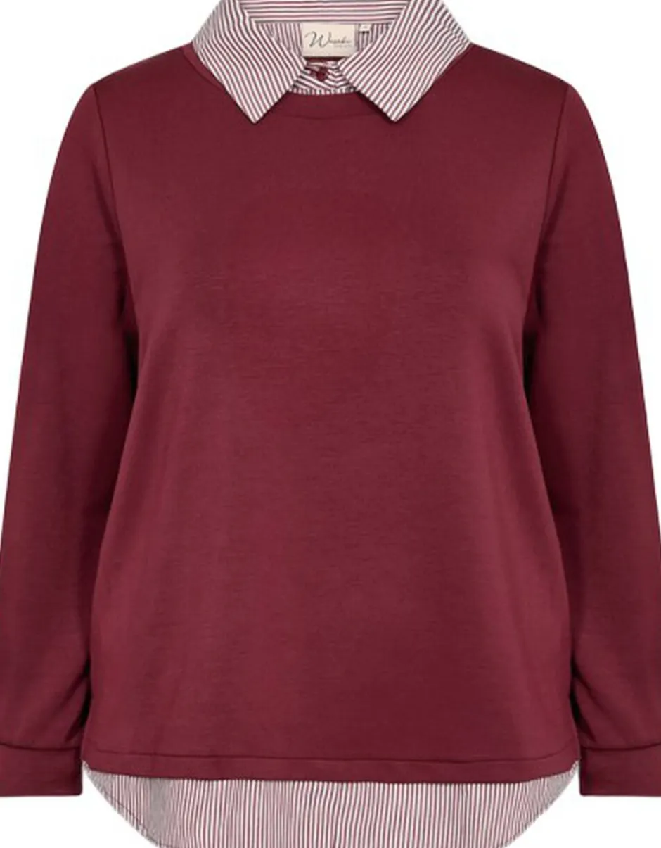WA-SABINA 63 Sweatshirt er fremstillet af 48 % modal, 48 % polyester og 4 % elastan. Den har indbyggede skjortedetaljer med stribet krave og kant. Sæt den sammen med jeans eller bukser for et smart og afslappet look.