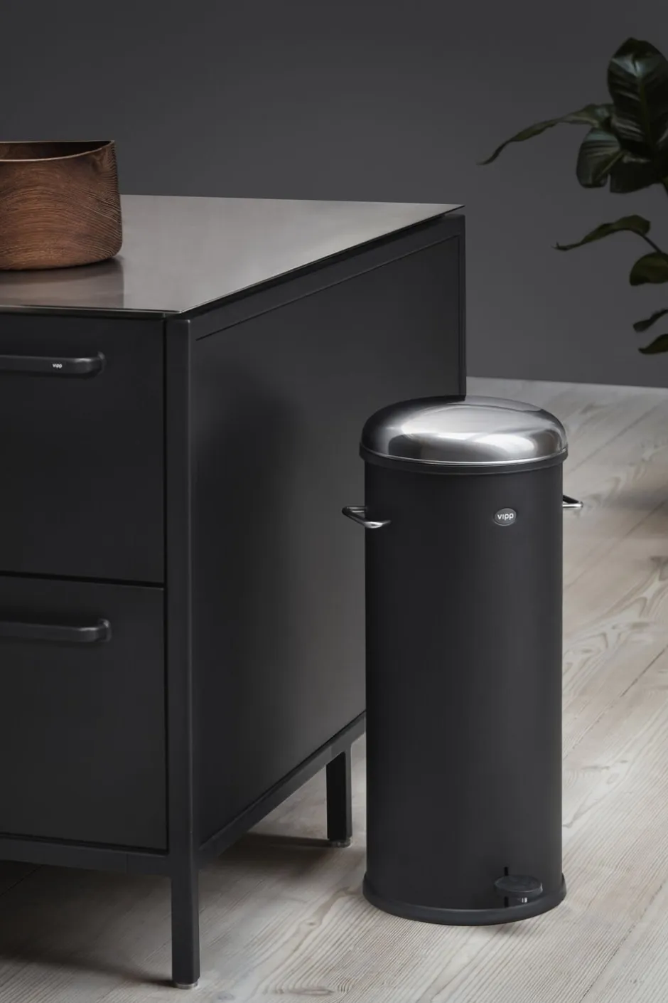 Vipp17 pedalspanden 30 l. er udstyret med et låg af rustfrit stål, en dæmpemekanisme, som får låget til at lukke i en blød og lydløs bevægelse, samt en gummiring, der garanterer lufttæthed. Kroppen er fremstillet i pulverlakeret stål og skjuler den udtagelige inderspand i galvaniseret stål. En gummiring i bunden sørger for at sarte overflader skånes.