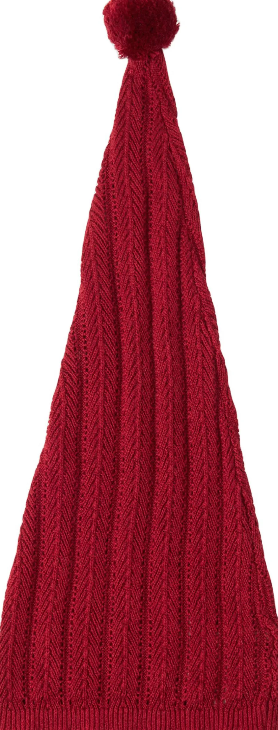 Nissehue med kvast strikket med fine kabelstrik detaljer. Nissehuen er både blød og behagelig at have på.