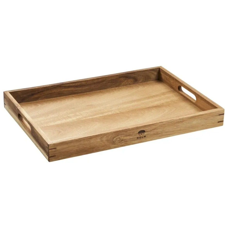 Klassisk og rummelig bakke i akacietræ. Med praktiske bærehåndtag og den perfekte størrelse til servering af eftermiddagskaffen i stuen, snacks og kølige drikkevarer på terrassen, morgenmad på sengen eller noget helt fjerde. Varen er produceret i akacietræ.