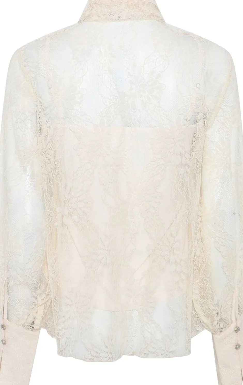 BugleBBOmassa bluse er en elegant blondebluse, der kombinerer sofistikeret Design med feminine detaljer. Det lette, gennemsigtige stof skaber et Exclusive look, mens den fastgjorte bindebånd i nakken tilføjer et klassisk og romantisk tvist. Style den med en enkel nederdel eller bukser for et tidløst outfit, eller brug den under en blazer for et mere formelt look. Et ideelt valg til både festlige lejligheder og elegante hverdagslooks. – Blondestof – Bindebåndsdetalje i halsen – Gennemsigtigt Design – Lange ærmer med manchetter – Feminint og tidløst udtryk