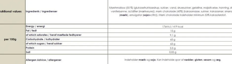 uftige skumfiduser med naturlig vanilje dyppet i kraftig mørk chokolade, der pakker den bløde marshmallow kærligt ind. Enkeltindpakkede. 4 stk. i æsken
