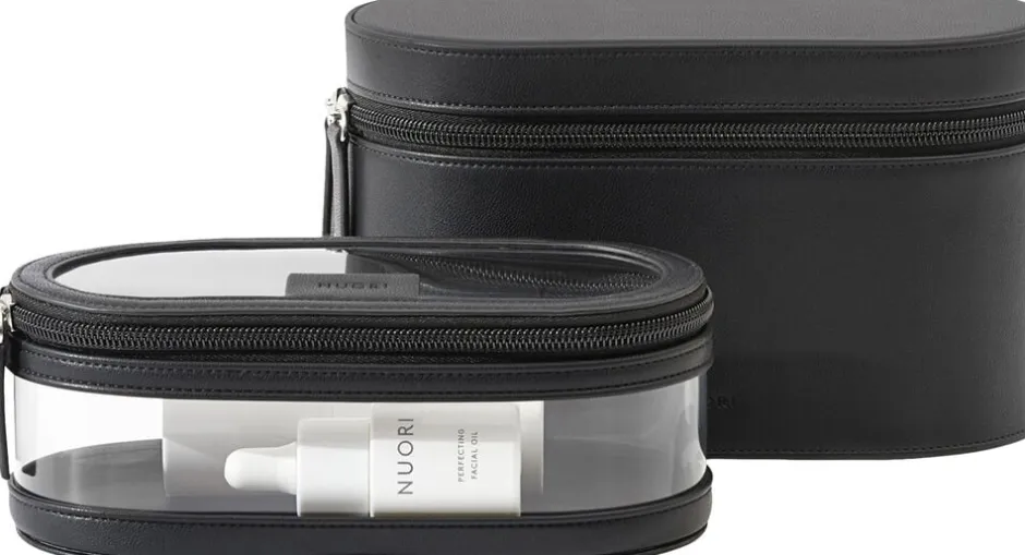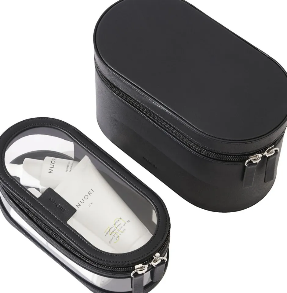 Et sæt af to stilige og elegante skønhedstasker, som består af to dele: en eksklusiv, kompakt taske og en gennemsigtig rejse-taske der er internationalt godkendt til væsker under flyrejsen. Smuk skandinavisk design med førsteklasses fornemmelse og exceptionel holdbarhed. Findes i fire signaturfarver: Neutral, Rosa, Havblå og Sort.