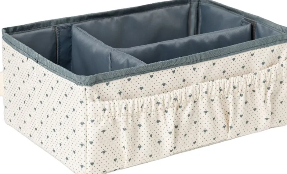 Pusleopbevaringskassen gør det nemt at organisere de ting man har brug for under pusletid. Kassen er perfekt til opbevaring af bleer, cremer, stofbleer og andre puslenødvendigher.Opbevaringskassen består af et stort rum med aftagelige rumdelere – med praktisk velcrolukning, så man selv bestemmer om man vil have et stort rum eller tre mindre rum.Opbevaringskassen har praktiske lommer, en stor og to små. Når du ikke bruger kassen og vil spare plads, kan du åbne bunden, tage den ud og folde den sammen.Mål: 32 x 22 x 13 cm