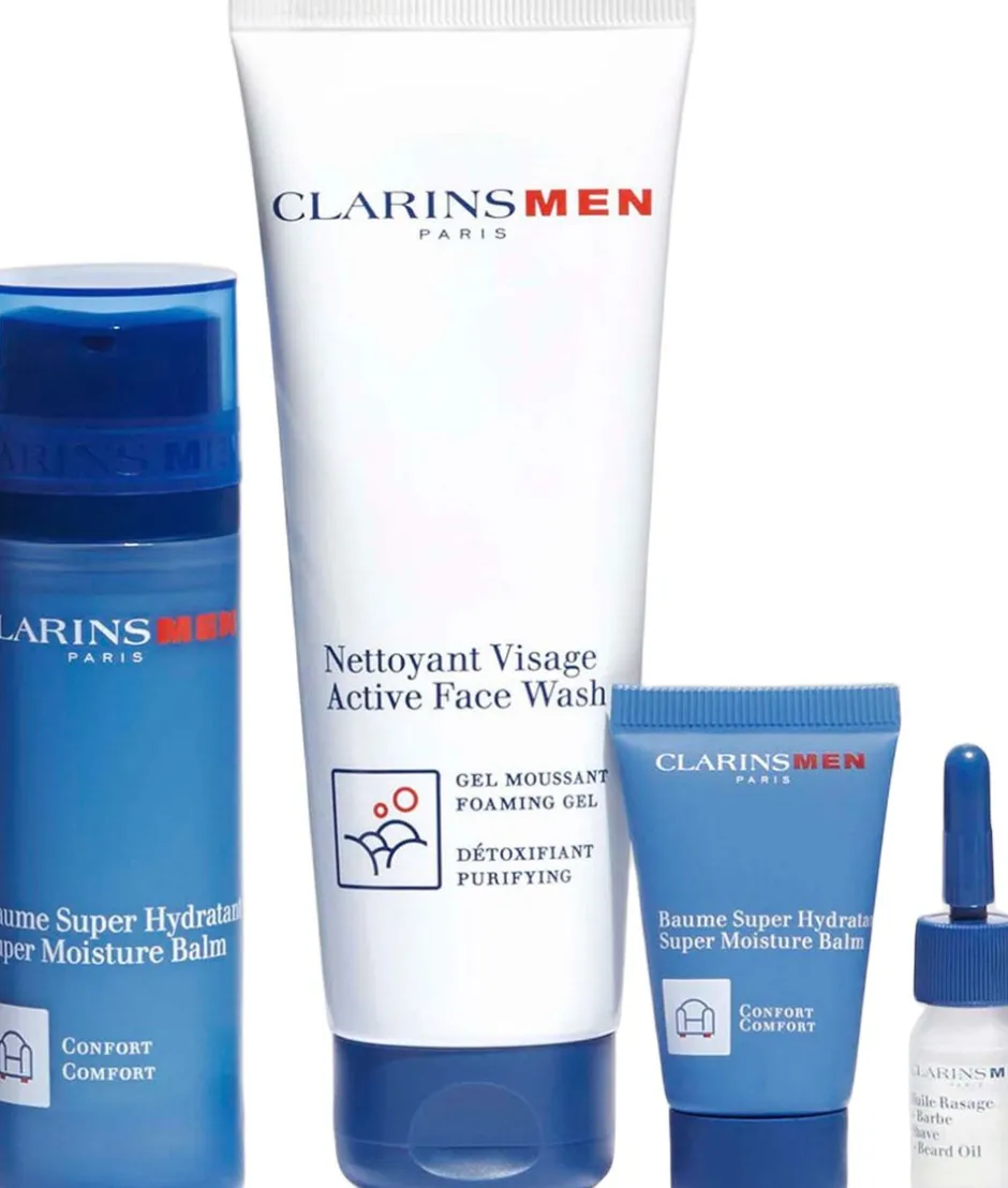Fejr julen med dette gavesæt fra Clarins. Gavesættet indeholder: MENS MOISTURE BALM 50ML, MEN ACTIVE FACE WASH 125ML, MENS MOIST BALM Trial size 12ML, MEN SHAVE OIL SAMPLE 3MLVærdi: 620 DKK