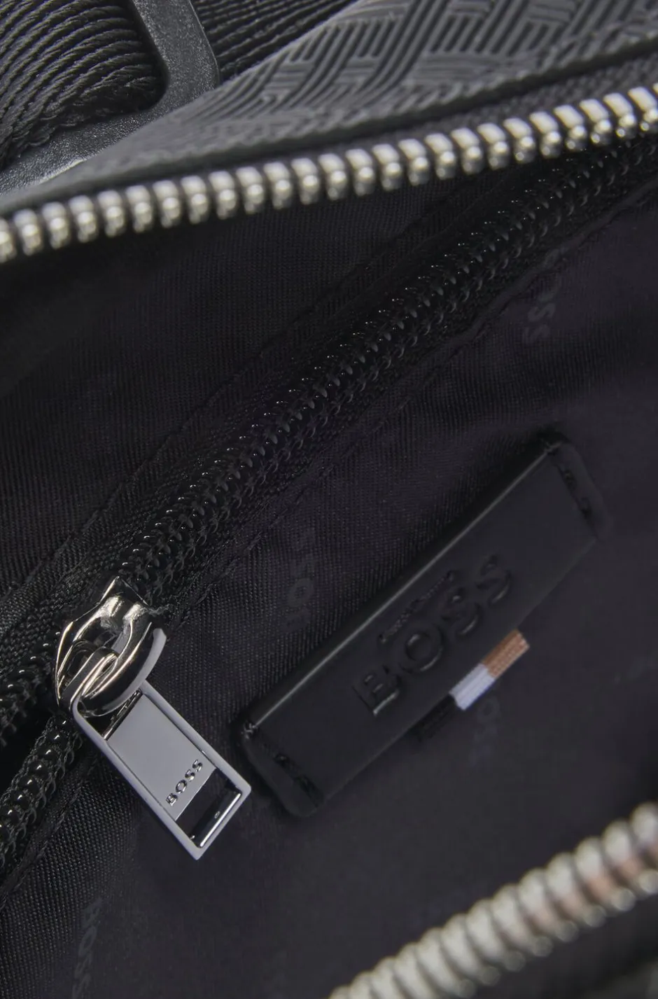 Denne crossbody-taske fra BOSS herretøj er fantastisk til travle dage i byen og har et tekstureret monogrammønster, der er forskudt af almindelige kanter. Logo og signaturstribe. Mål: 13,5 x 19,5 x 6 cm. Dette produkt indeholder mindst 60 % bedre råmaterialer. Dette produkt er delvist fremstillet af Recycled polyester. Hos HUGO BOSS foretrækker vi Recycled polyester fra tekstilaffald før og efter forbrug og gør vores bedste for at udfase polyester fra PET-flasker.