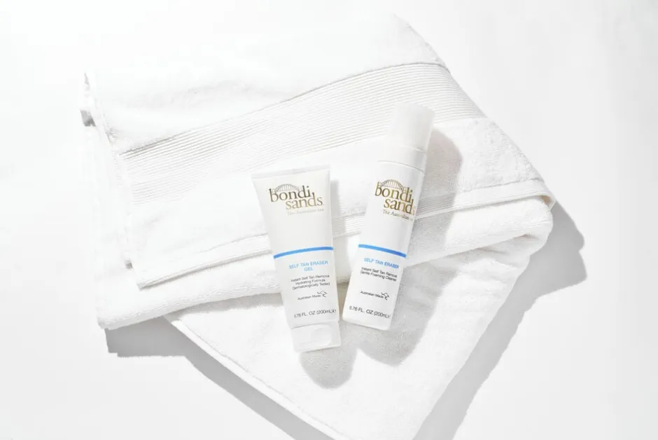 Trin 3: Tag et varmt bad og tør farven af med en våd vaskeklud. På mere genstridige eller tørre hudpartier anbefales det at benytte Bondi Sands’ eksfolieringsvante til skånsom fjernelse af farven.