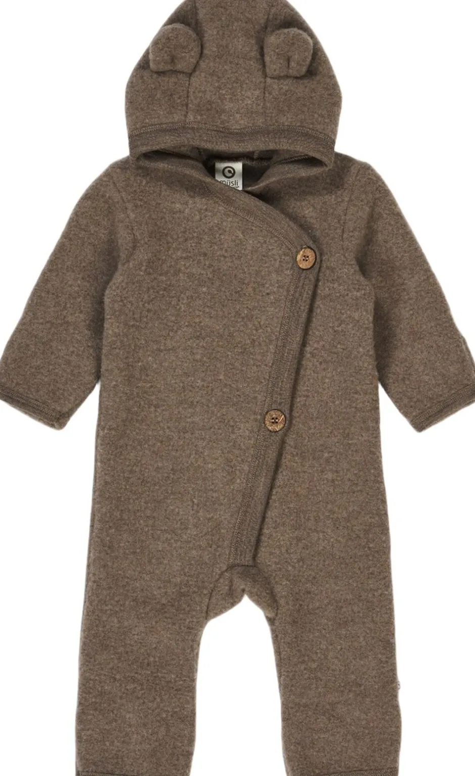 Fantastik blød og lækker ulddragt til de koldere måneder. Dragten har knapper hele vejen ned igennem dragten som gør det let at tage af og på. Knapperne i dragten er lavet af kokosnødder. Dragten er udstyret med en sød hætte med ører og fødder og ærmer med vendbare ender som kan foldes således at fødder og hænder forbliver ind i dragten og holder på varmen. Dragten er super praktisk og er anvendelig som blandet andet sovedragt og køredragt. Uld er varmeregulerende og har den evne at den holder tør og varm da uld transporterer sved væk fra kroppen. Produktet er Naturetexx® Plasma- og GOTS Organic-certificeret, hvilket betyder: – Ingen skadelige kemikalier – Ingen superwash – Ingen mulesing eller sheep dip – Ingen grusom dyretransport Vaskevejledning: Uld skal ikke vaskes så ofte som andet tøj, da det er et selvrensende materiale, der sjældent kommer til at lugte. Men når der nu er tale om børnetøj er vask alligevel uundgåeligt. Alle vores uld-produkter kan vaskes ved 30 grader på uld-program og med lav centrifugering. Benyt et vaskemiddel beregnet til uld, da almindeligt vaskemiddel indeholder enzymer som nedbryder ulden og dens kvaliteter. Kan stryges eller dampes ved lav temperatur. (GOTS Organic Certified by Ecocert Greenlife Lic. No. 151714). Produktet er GOTS organic- certificeret, hvilket betyder at bomulden er certificeret økologisk, og at der i alle andre processer som farvning, strikning og syning er taget de strengeste hensyn til miljøet. GOTS er internationalt anerkendt som den førende standard for forarbejdning af tekstiler af økologisk bomuld. Derudover tages der også hensyn til arbejdsforholdene, hos dem der producerer tøjet. Økologisk uld 100%