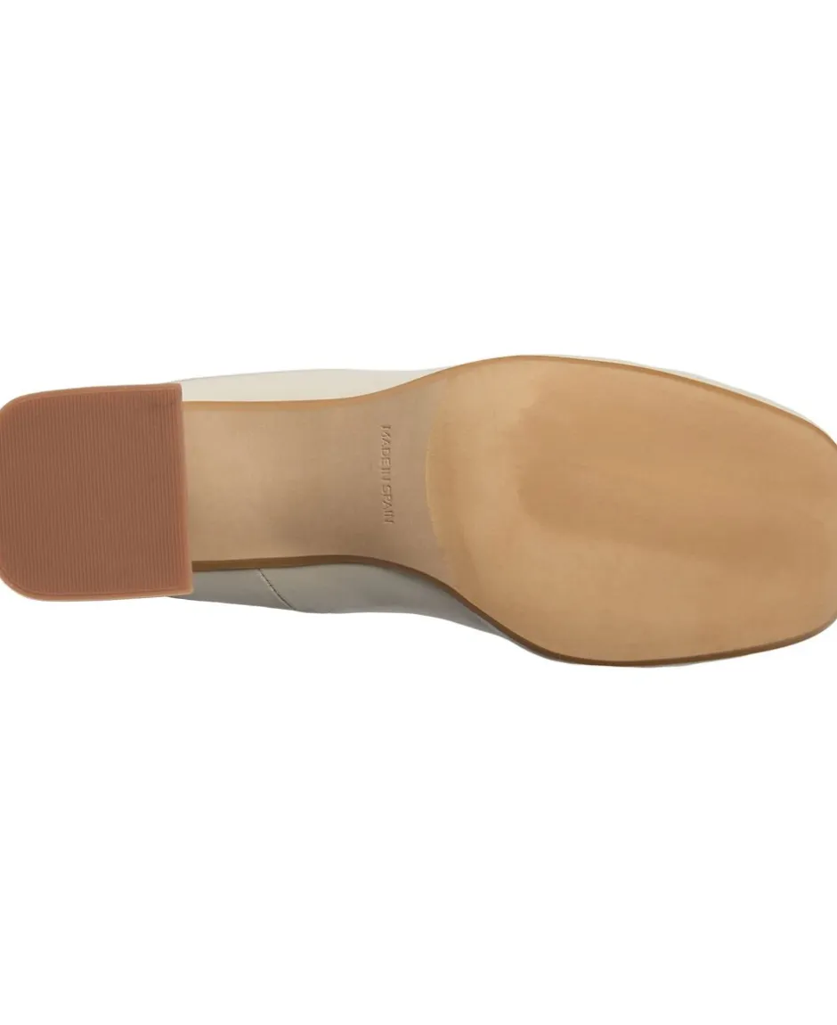 Skoen er fremstillet i læder med en firkantet tå, er dekoreret med et guldspænde over forfoden og er lavet på en skulpturel blokhæl, der giver skoen et moderne look. Materiale: Læderfarve: Cream: 7 cm størrelsesguide: Normal