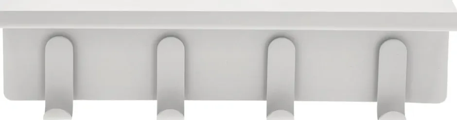 Minimalisme og funktion i smuk forening. Entréhylden med kroge er perfekt til de småting, som alle har, men ingen ved, hvor de skal placere. Vi nævner i flæng nøgler, mobiltelefoner, hundesnore, skohorn og handsker. Der er ingen synlige skruer. I stedet medfølger monteringsvenlige vægbeslag. Udført i pulverlakeret stål.
