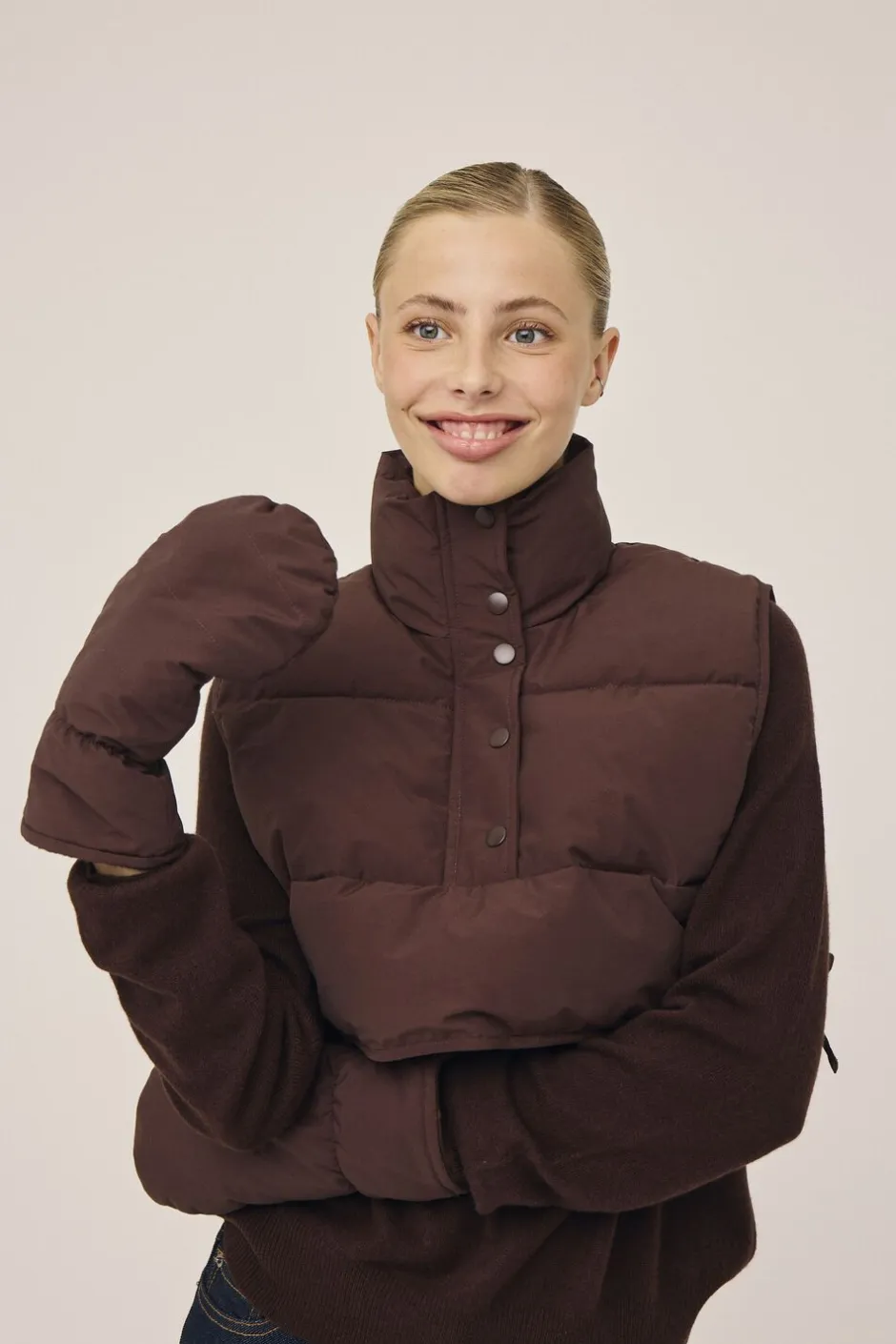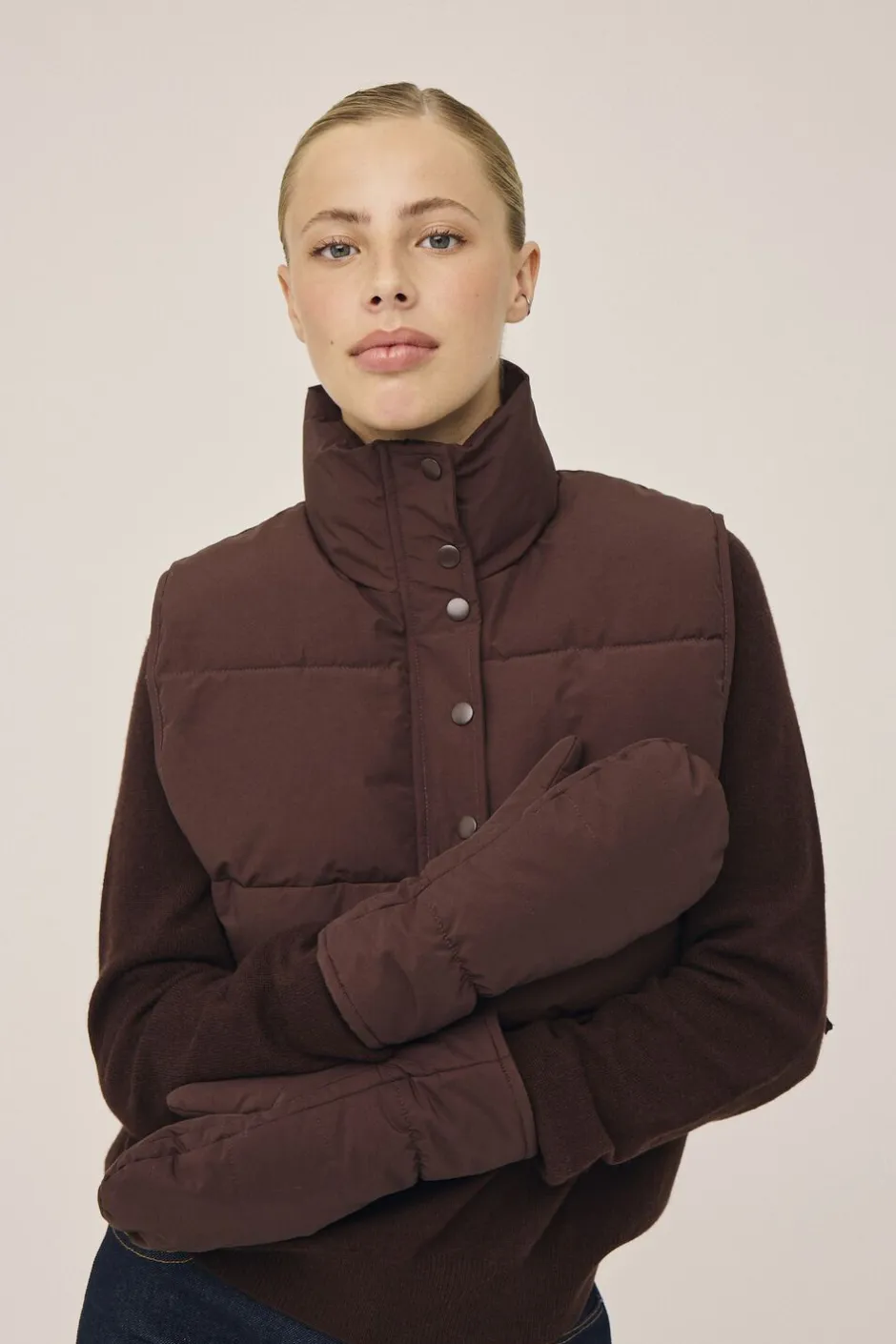 Vandtæt, vatteret halsedisse fra Magasin du Nord Collection i den lækreste kvalitet af 50% genanvendte fibre med GRS-certificering. Halsedissen er enkel i modellen med lynlåslukning og trykknapper på fronten samt bindebånd i siderne. En skøn halsedisse i en lækker kvalitet.