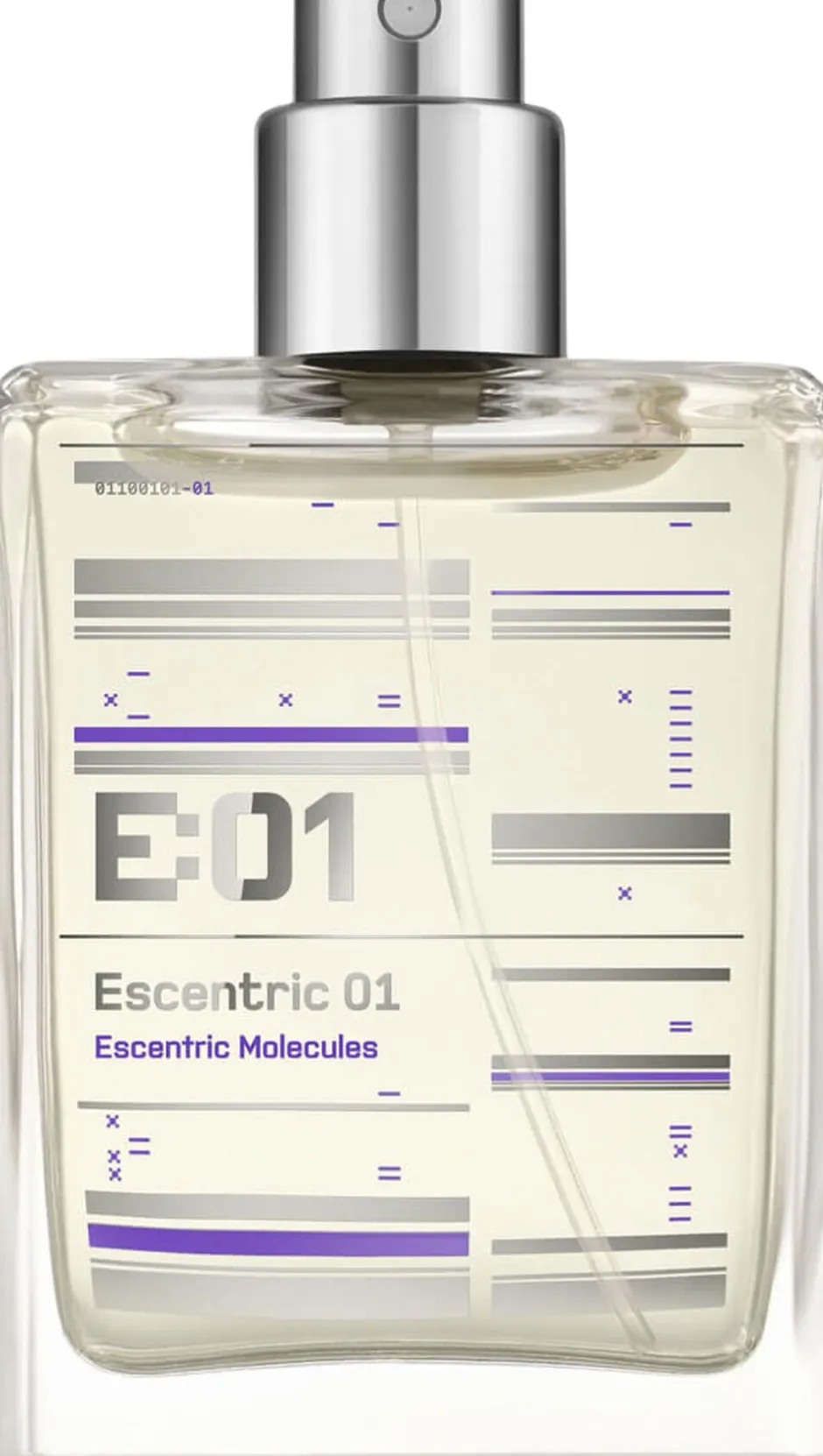 Escentric 01 TRAVEL edition er højt koncentreret med hele 65% Iso E Super sammen med bl.a. pink peber og grøn lime i en ny balanceret form. Hellere end den traditionelle duftformel af top, – hjerte – og bund noter, bevæger Escentric 01 sig hurtigt fra top til bund og bliver længere i den basale duftnote, som skifter imellem sanselige og varme træagtige duftnoter. Det er som om at Escentric 01 intet hjerte har, men en enorm sjæl! Næsen bag duften, Geza Schoen har skabt Escentric MoleculeS sammen med Londons branding eksperter fra ThisCompany. Inspireret af duftens sanselige og naturvidenskabelige natur, resulterede designet i matematiske binære koder og molekylær grafik.