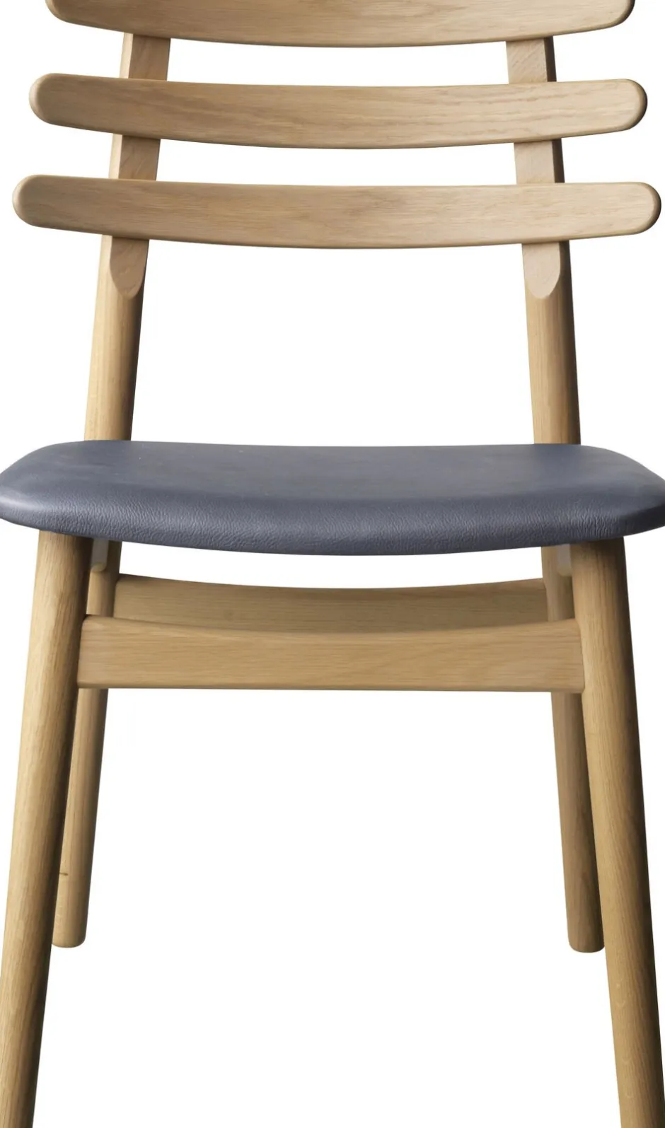 Poul M. Volthers spisebordsstol fra 1951 er genkendelig som en klassiker fra dansk møbeldesigns guldalder – og alligevel helt anderledes end mange af de samtidige stole. De tre vandrette rygstykker skaber en god siddekomfort og nogle helt andre linjer end i mange af de samtidige spisebordsstole – hvor linjerne typisk var lodrette. Det er et elegant udtryk, der er genkendeligt som en forgænger til Poul M. Volthers mest kendte møbel: Lænestolen Corona. J48 fås både med og uden stof – og lædersæde samt uden polster. Alle J48 stole har en virkelig høj komfort.