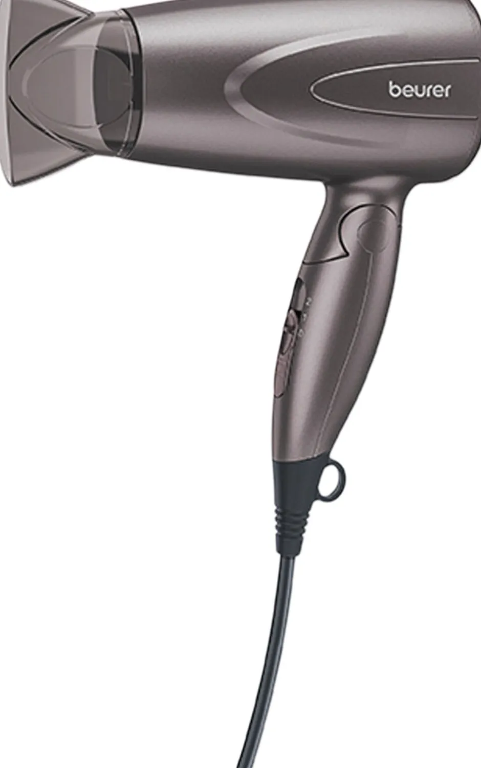 Føntørreren er udført i et elegant lilla design. Ved opbevaring kan du folde den sammen med den pladsbesparende foldefunktion eller hænge den op i hanken i enden.