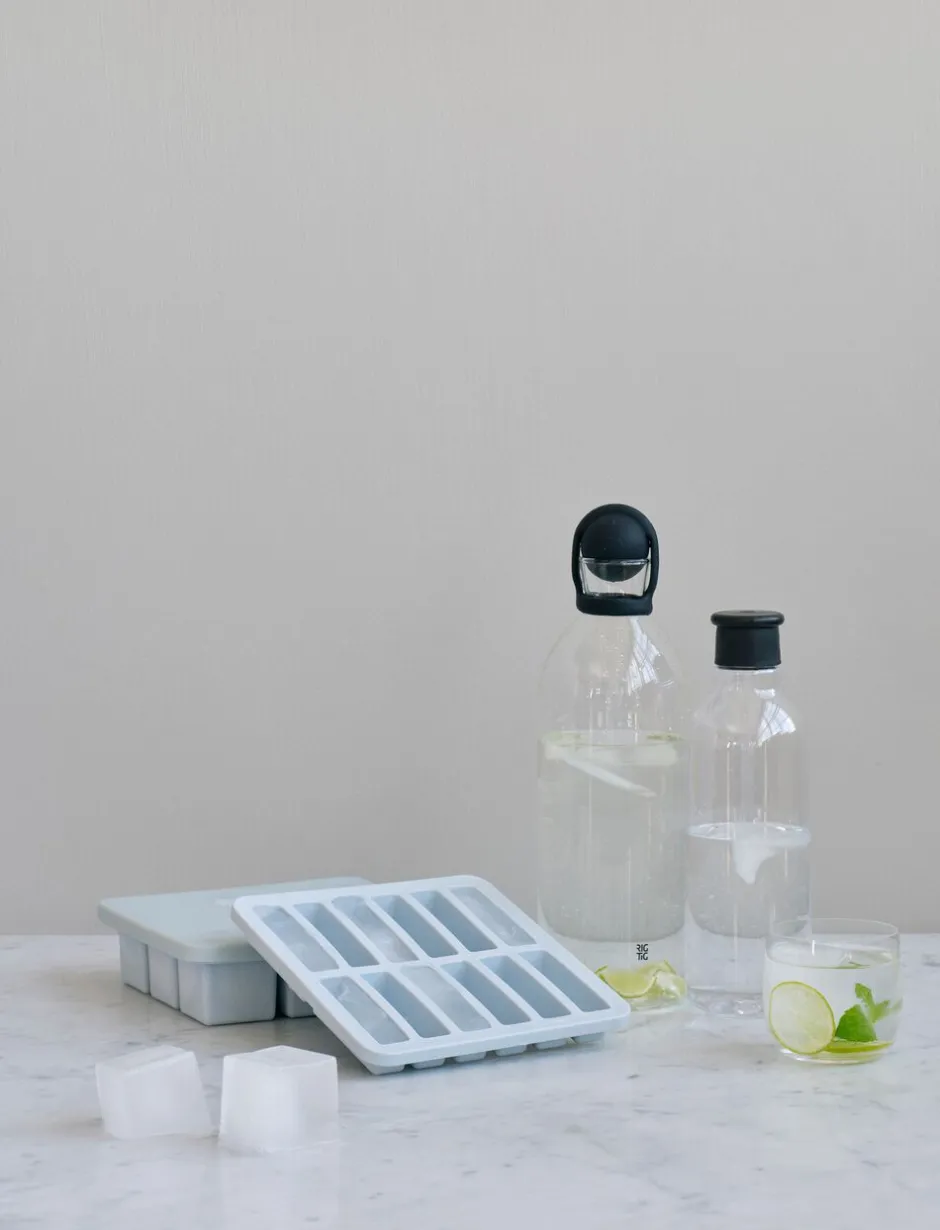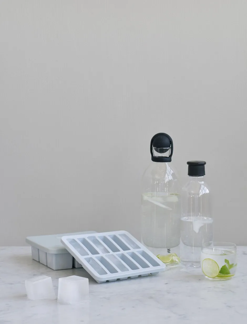 Den lille isterningbakke FREEZE-IT støber i rektangulære forme, ideelt til drikkeflasker eller serveringskander med smalle flaskehalse. For at gøre serveringen mere indbydende for både børn og voksne, kan man let sætte sit personlige præg på isterningerne, ved at tilføje alt fra frugtstykker, limeskiver eller mynteblade, spiselige blomster til naturlig frugtfarve.