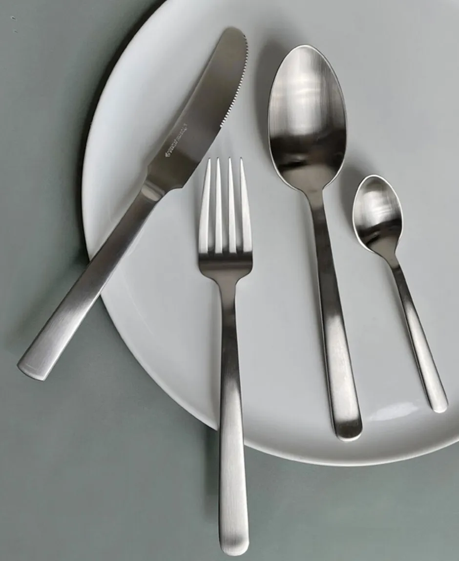 • Høj kvalitet: Bestikket er lavet af rustfrit stål i mat finish, hvilket sikrer holdbarhed og lang levetid. Det er robust nok til daglig brug, samtidig med at det tilføjer et strejf af elegance til enhver borddækning.