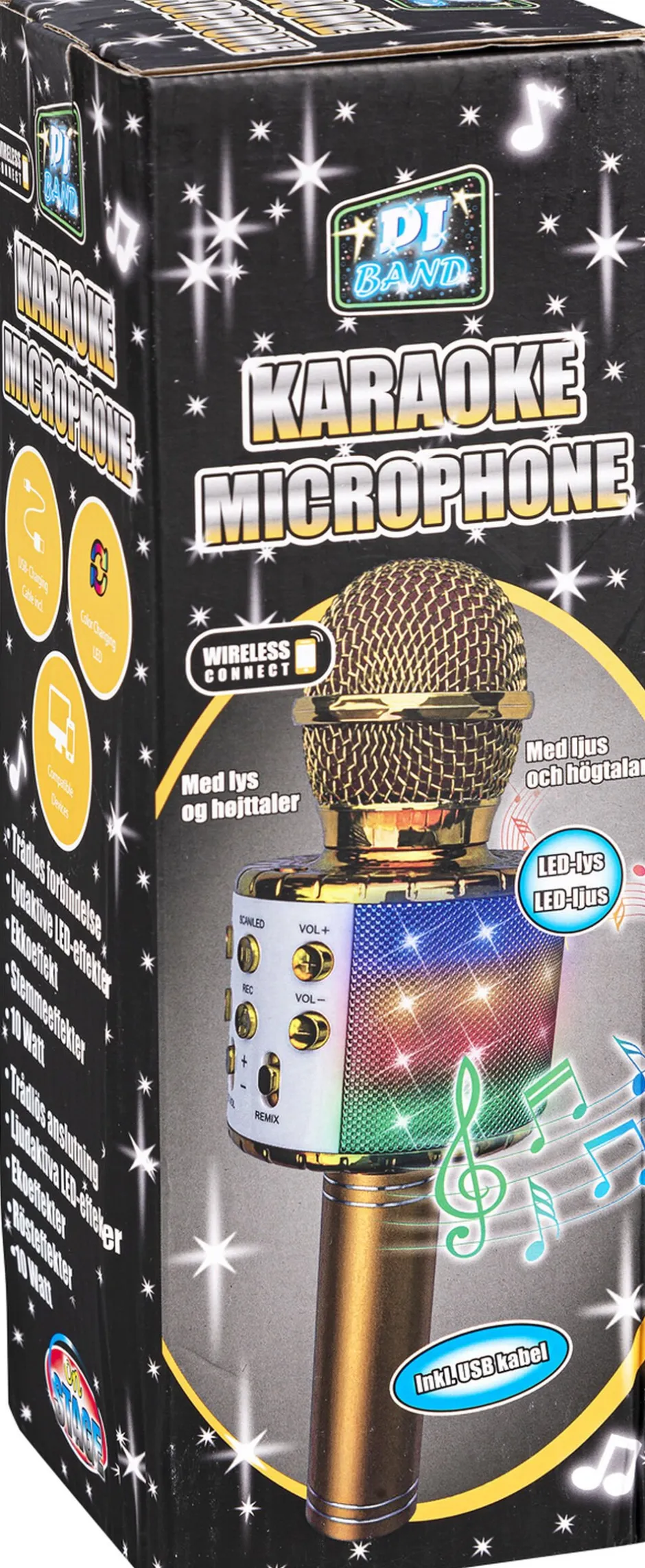 GULD KARAOKEMIKROFONmLYSBLUETOOTH USB-KABEL LEDmm