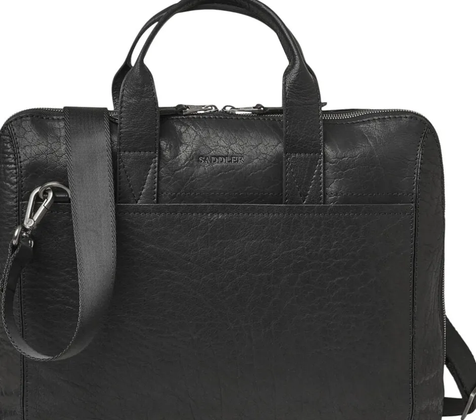 Computermappe model Gustav fra SADDLER. Produceret i højkvalitets bøffellæder. Indvendigt rum til 13-15″ PC, to stiklommer og en lynlåslomme. Udvendigt lomme med smart magnetlukning. Justerbar og aftagelig rem i textil. Bæredygtigt produceret.
