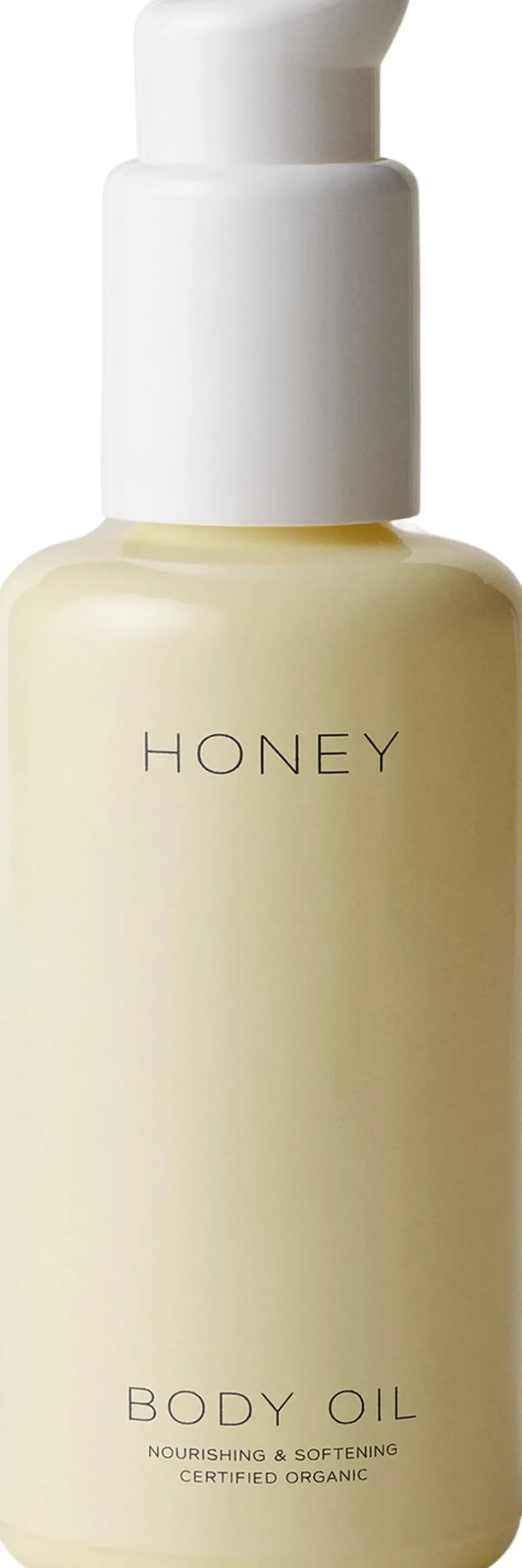 HONEY Body Oil er en nærende, styrkende og blødgørende kropsolie. Den er sammensat af seks økologiske og naturlige planteolier, der er udvalgt for deres effektivitet, blidhed og allergivenlighed: Styrkende hybenkerne og den rige rapskimolie kombineret med abrikoskerneolie, fugtbevarende sheasmør, antioxidantrig marulaolie samt silkeblød squalane.